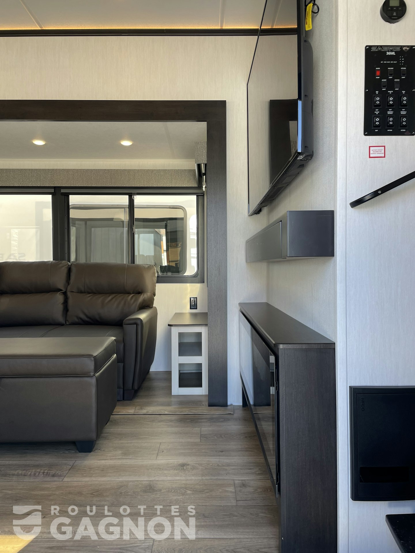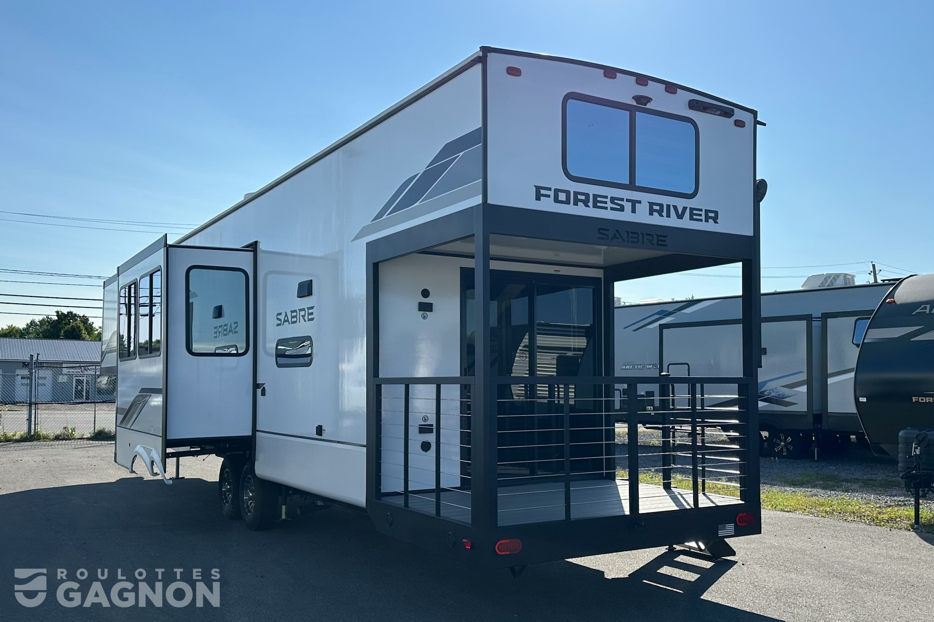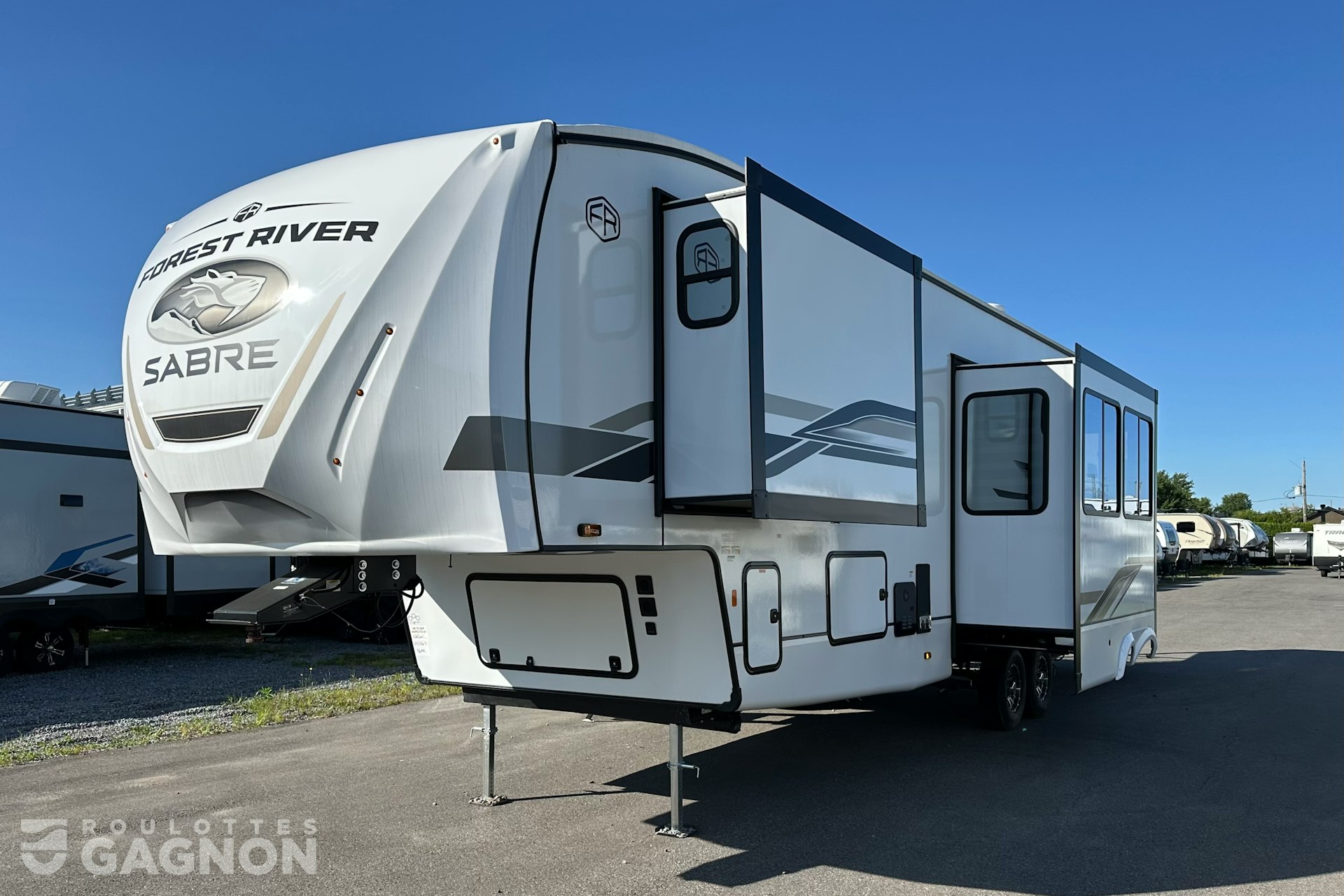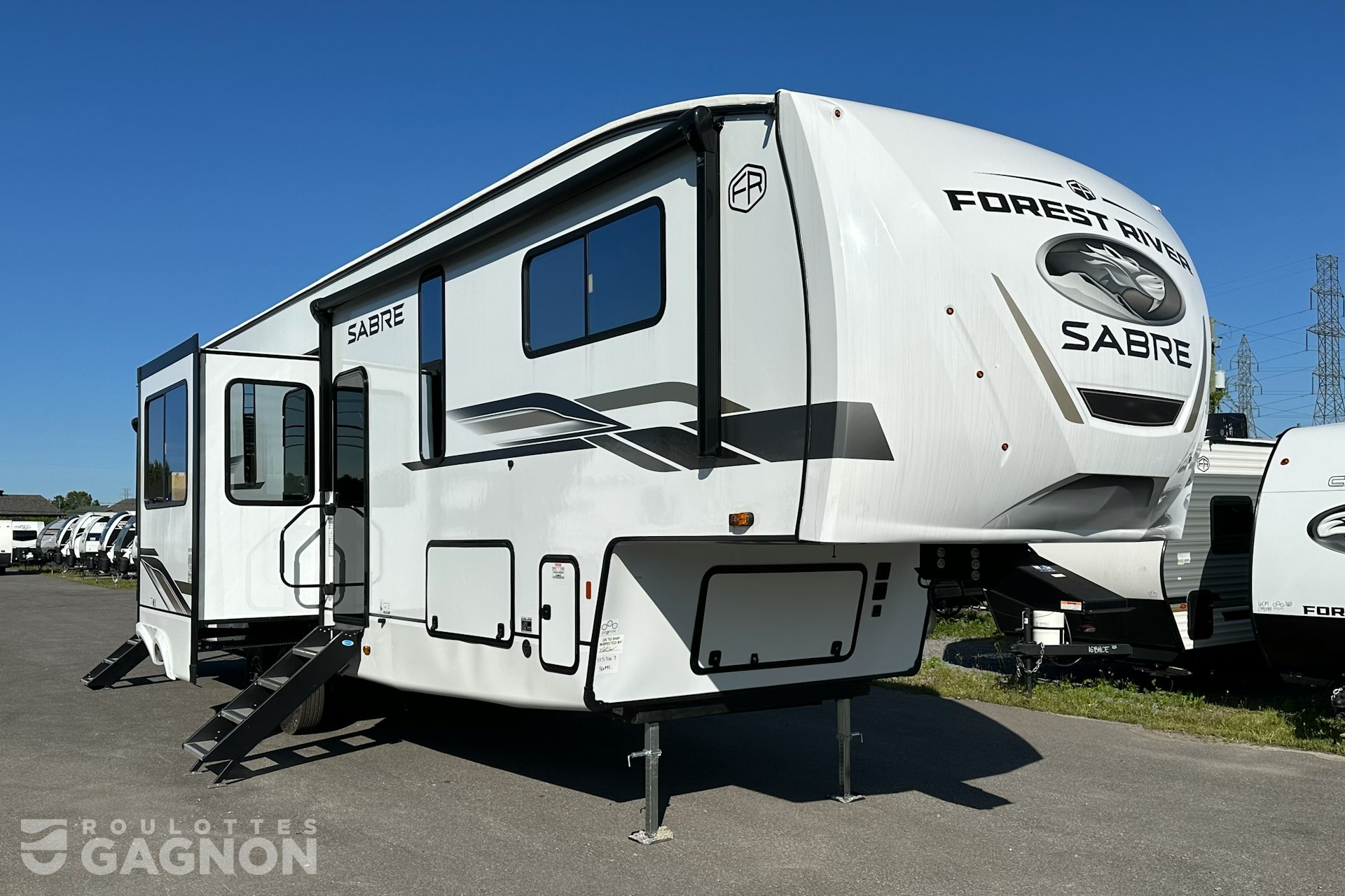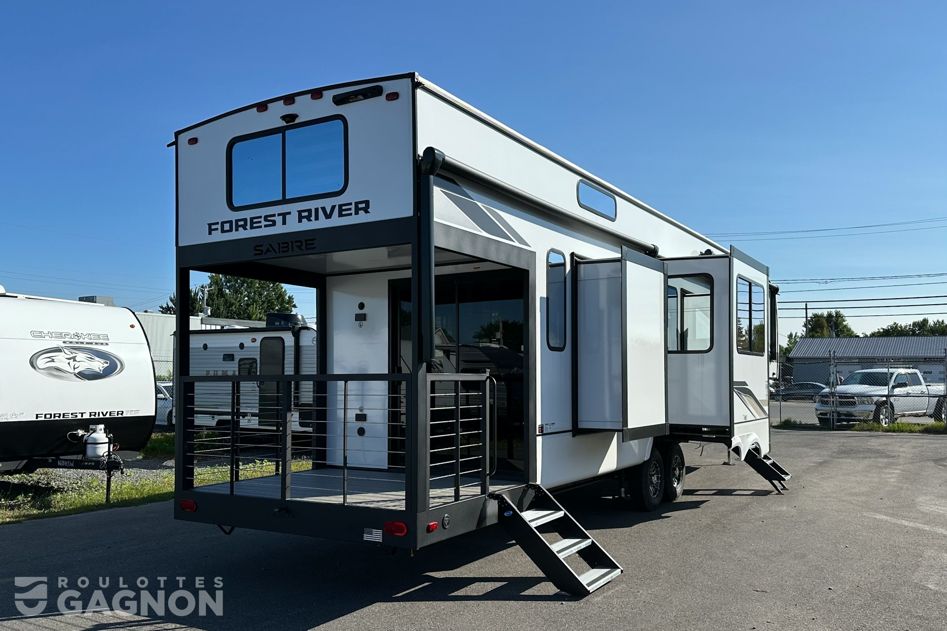 Roulotte Sabre 36 ML 2025 neuve à vendre. Cette fifth wheel fabriquée par Forest River est idéale pour un couple ou une famille et peut coucher jusqu’à 4 personnes. La Sabre 36 ML mesure 43,2 pieds et pèse 12 120 lb, son revêtement est en fibre de verre et les options suivantes sont incluses : vérins stabilisateurs auto-nivelants, préparation pour caméra de recul, auvent électrique, marche pied en un bloc (solid step), prise câble ou satellite, prise USB, téléviseur, éclairage au DEL, climatiseur, ventilateur de plafond, puits de lumière, douche extérieure, mags, fenêtres à verre énergétique réfléchissant, frigo extérieur, chauffe-eau instantané, foyer électrique, préparation pour laveuse et sécheuse, panneau solaire, prises usb c et moniteur de pression des pneus.