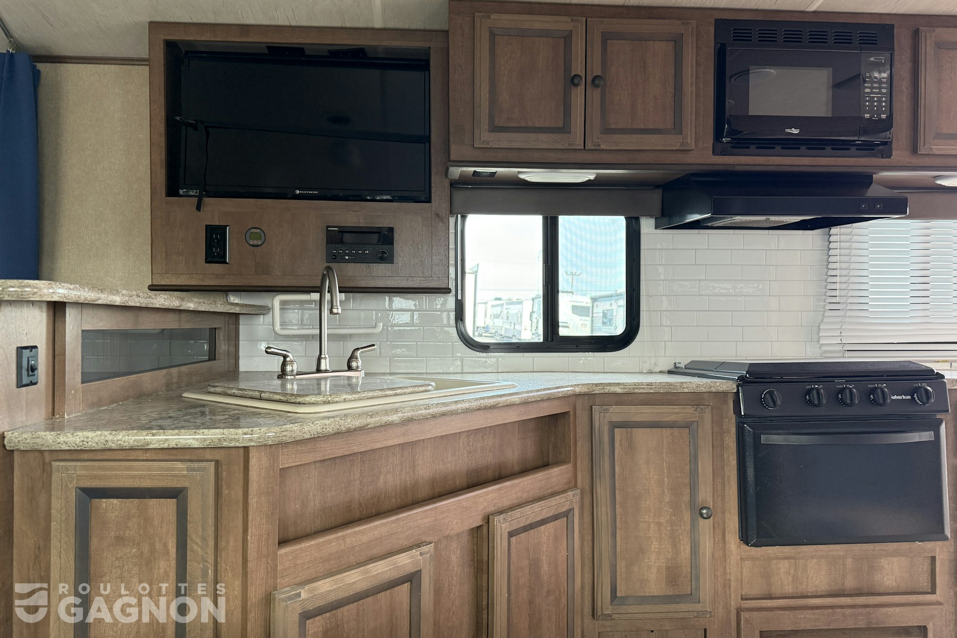 Note: Nous nous efforçons pour décrire les spécifications et les options des roulottes affichées sur notre site le plus précisément possible, toutefois, des erreurs peuvent se glisser. Nous sommes désolés si tel était le cas. Les photos sont à titre indicatif seulement. Les couleurs et les options peuvent varier selon les derniers changements apportés par le fabricant.