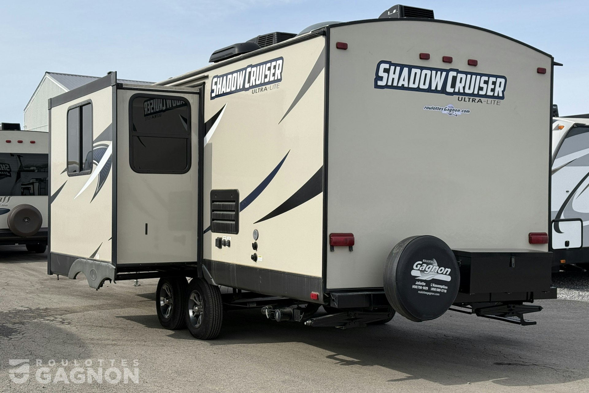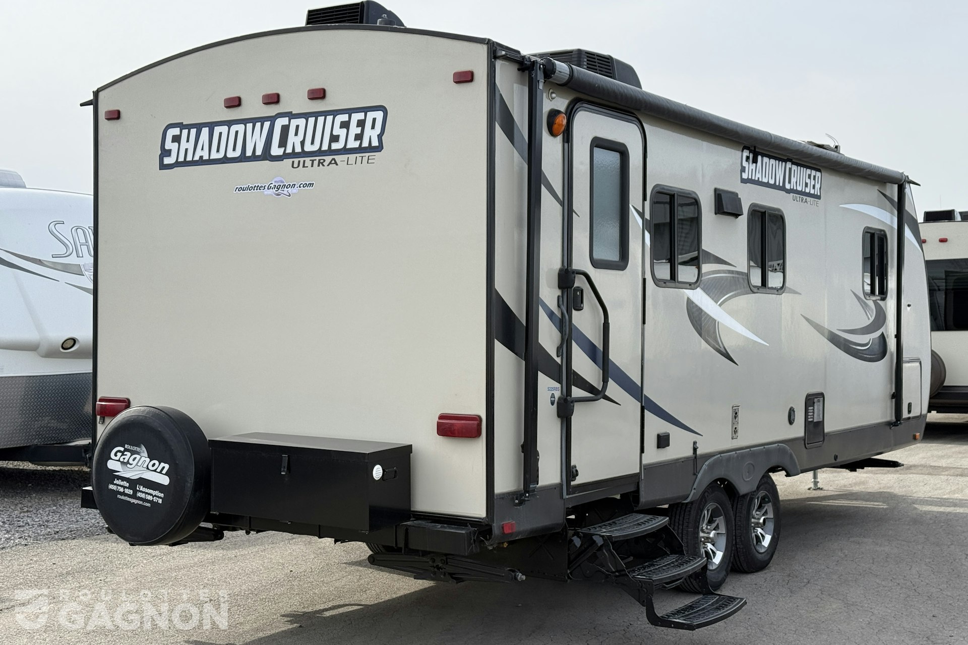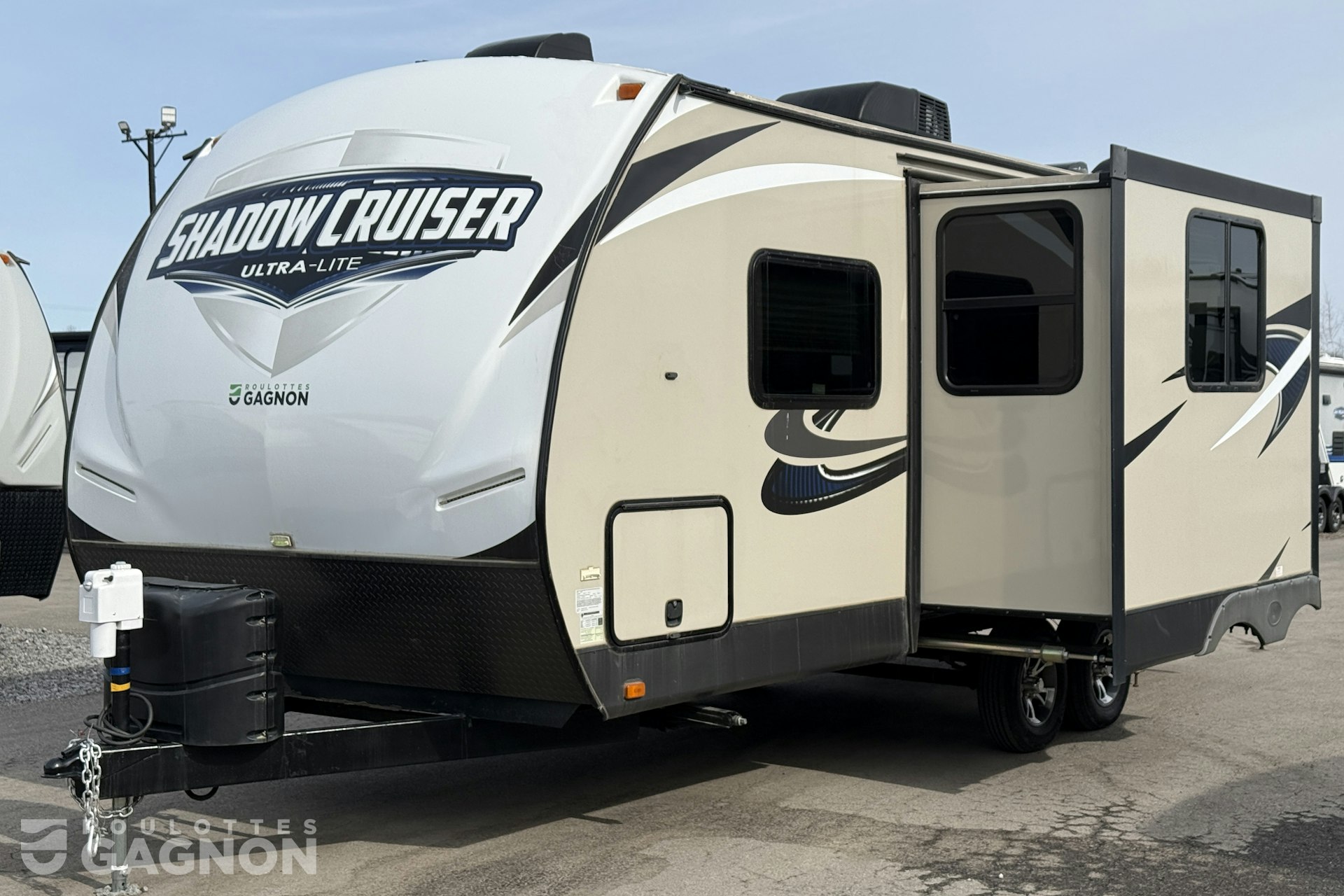 Roulotte Shadow Cruiser 225 RBS 2017 usagée à vendre. Cette roulotte de voyage fabriquée par Cruiser RV est idéale pour un couple et peut coucher jusqu’à 4 personnes. La Shadow Cruiser 225 RBS mesure 25.8 pieds et pèse 4730 lb, son revêtement est en fibre de verre et les options suivantes sont incluses : jack de pole électrique, vérins stabilisateurs manuels, auvent électrique, prise câble ou satellite, bluetooth, prise USB, téléviseur, radio, hauts parleurs extérieurs, éclairage au DEL, climatiseur, puits de lumière et mags.