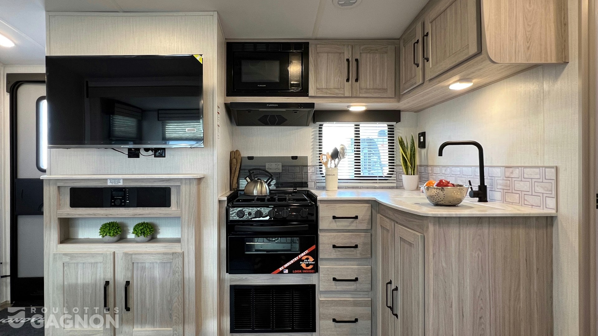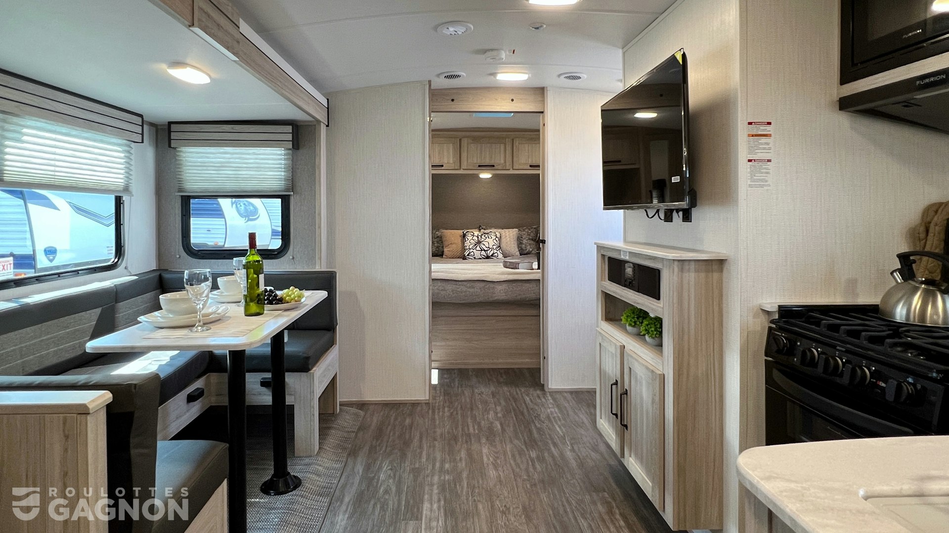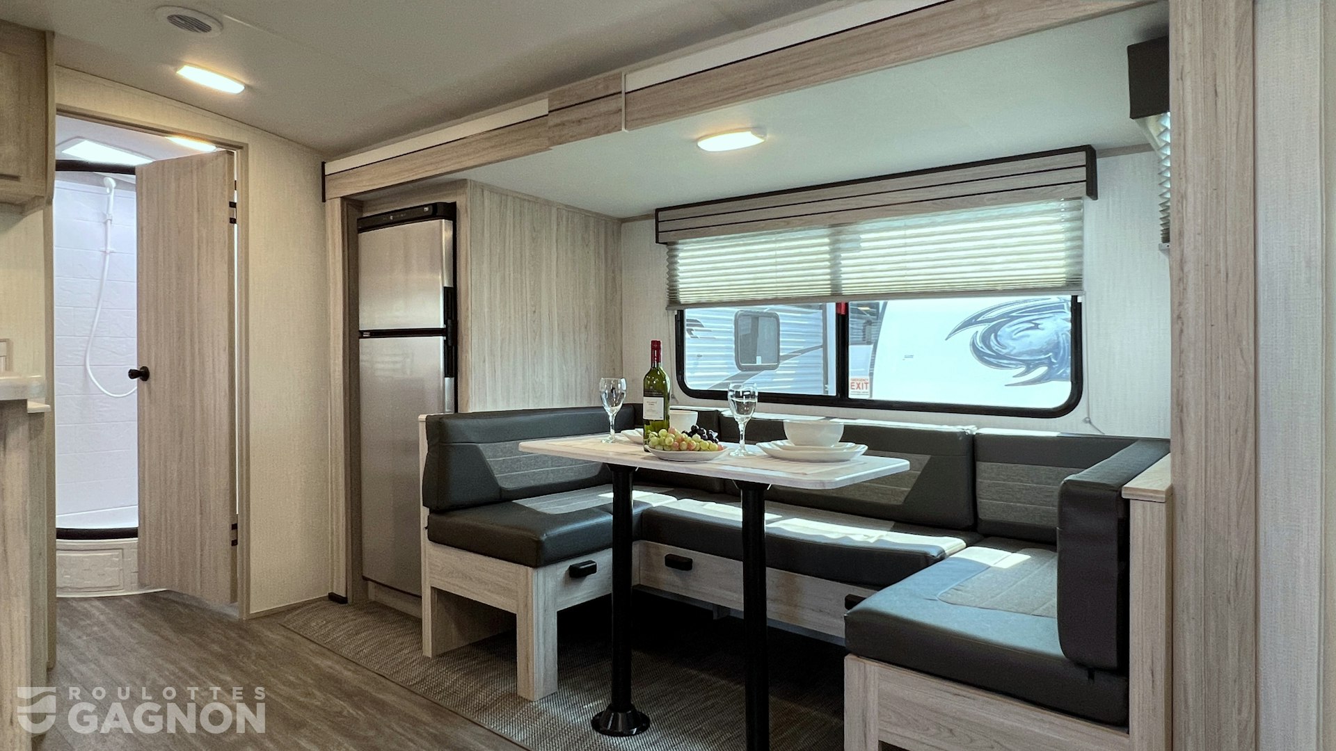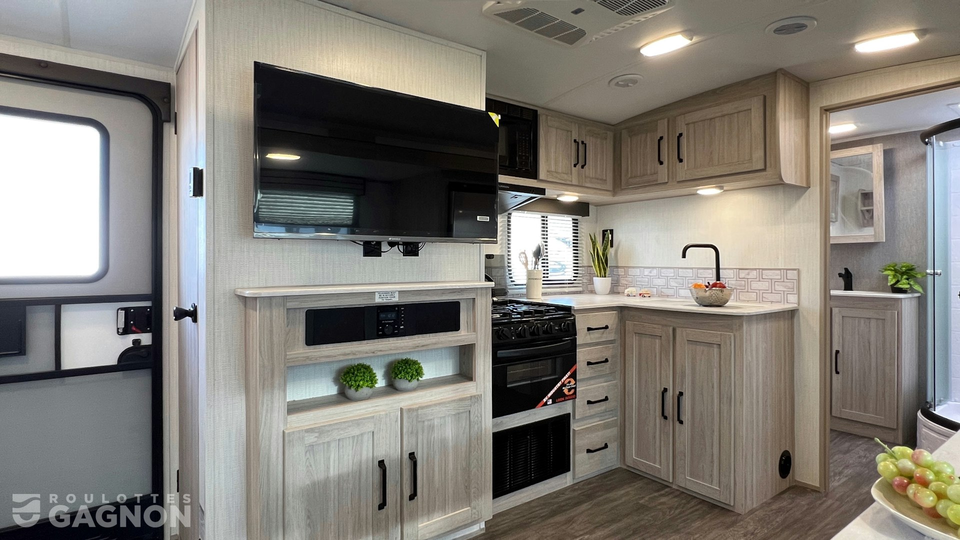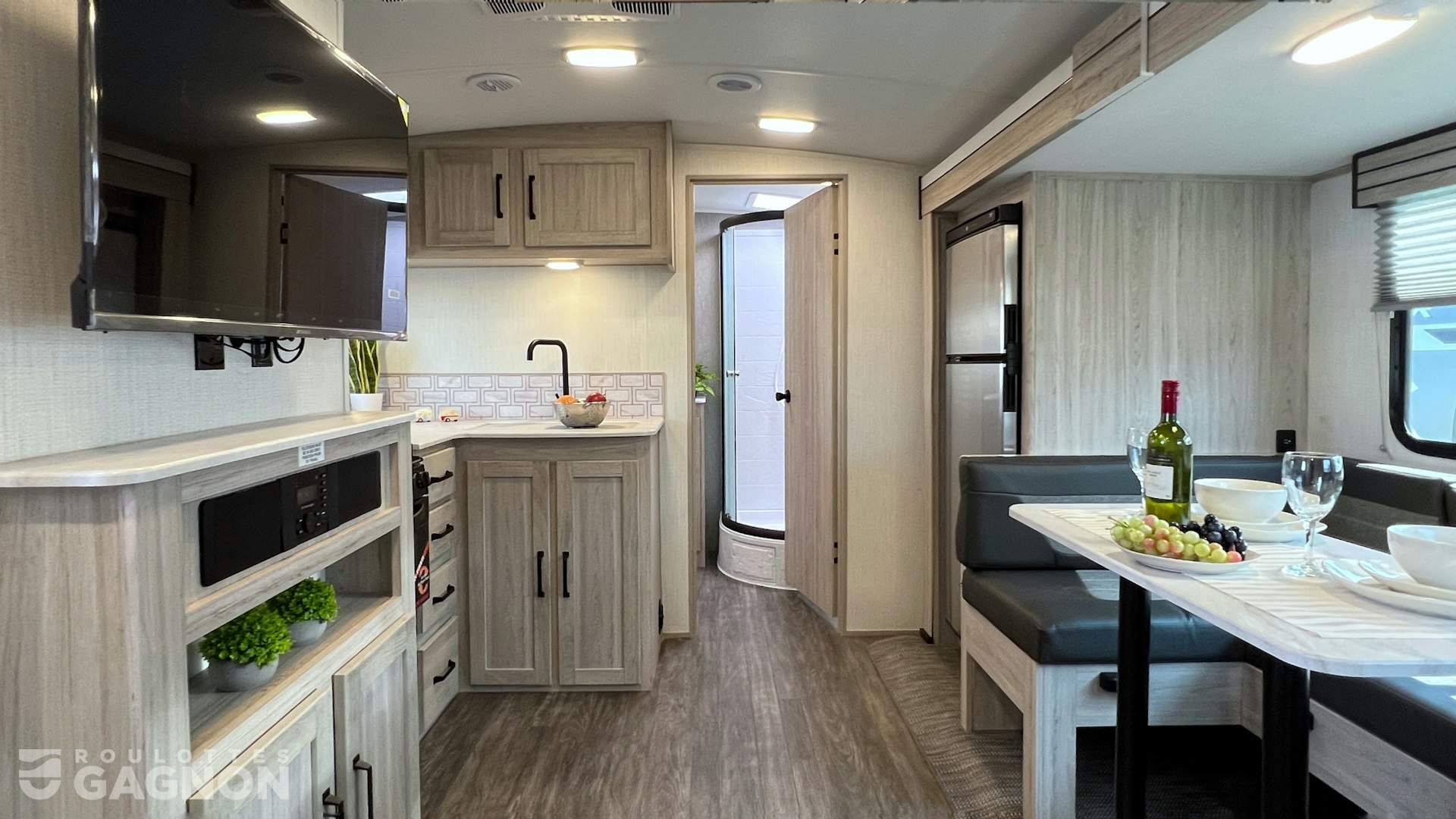 Note: Nous nous efforçons pour décrire les spécifications et les options des roulottes affichées sur notre site le plus précisément possible, toutefois, des erreurs peuvent se glisser. Nous sommes désolés si tel était le cas. Les photos sont à titre indicatif seulement. Les couleurs et les options peuvent varier selon les derniers changements apportés par le fabricant.