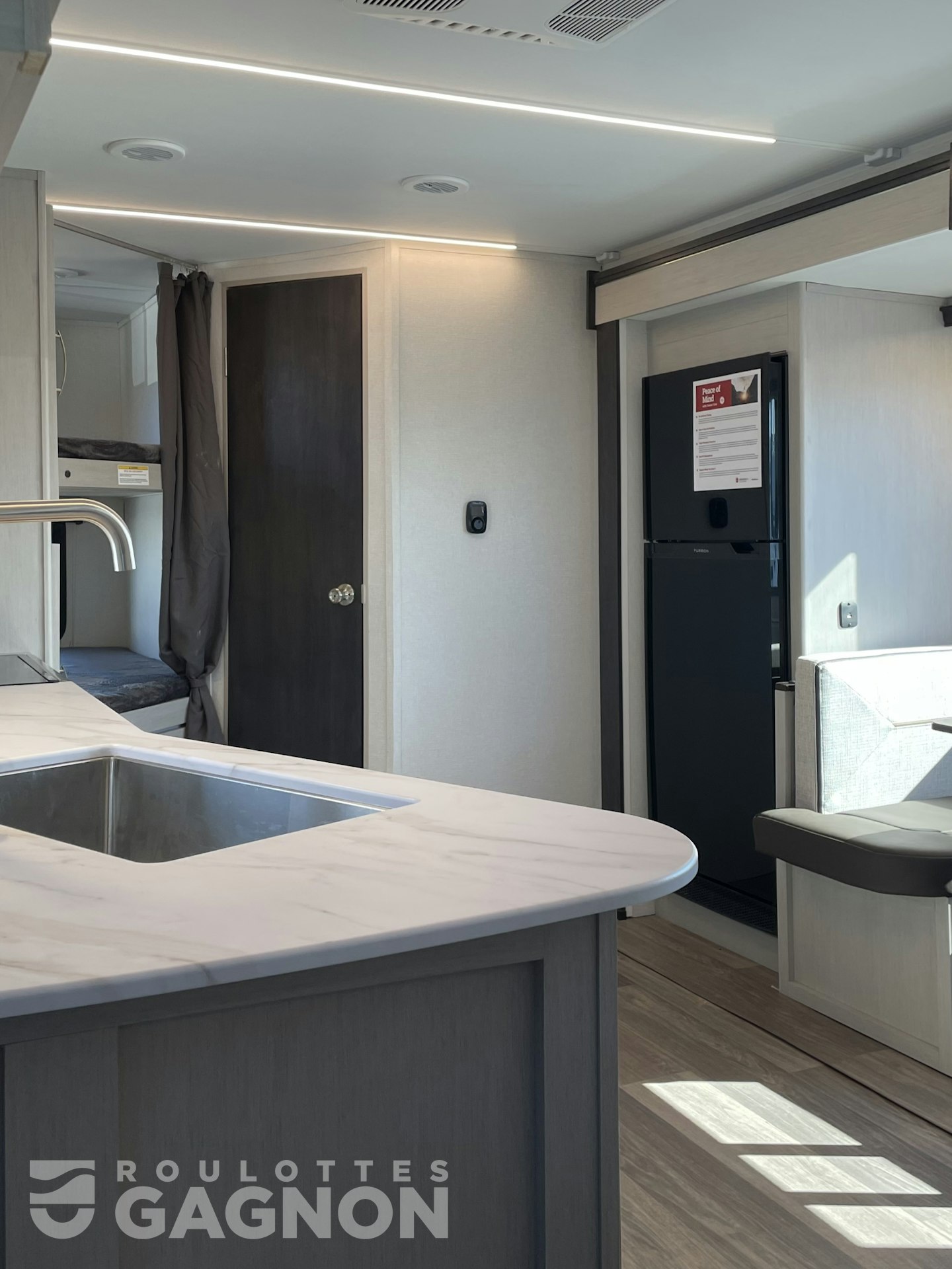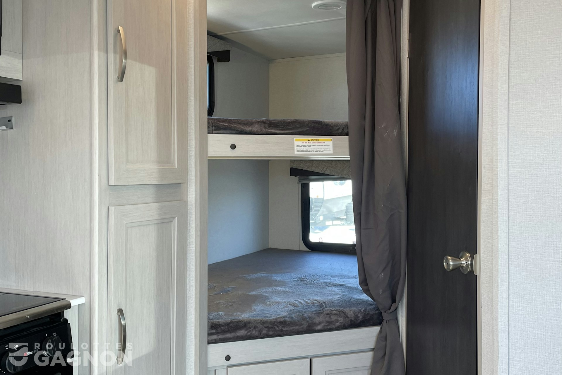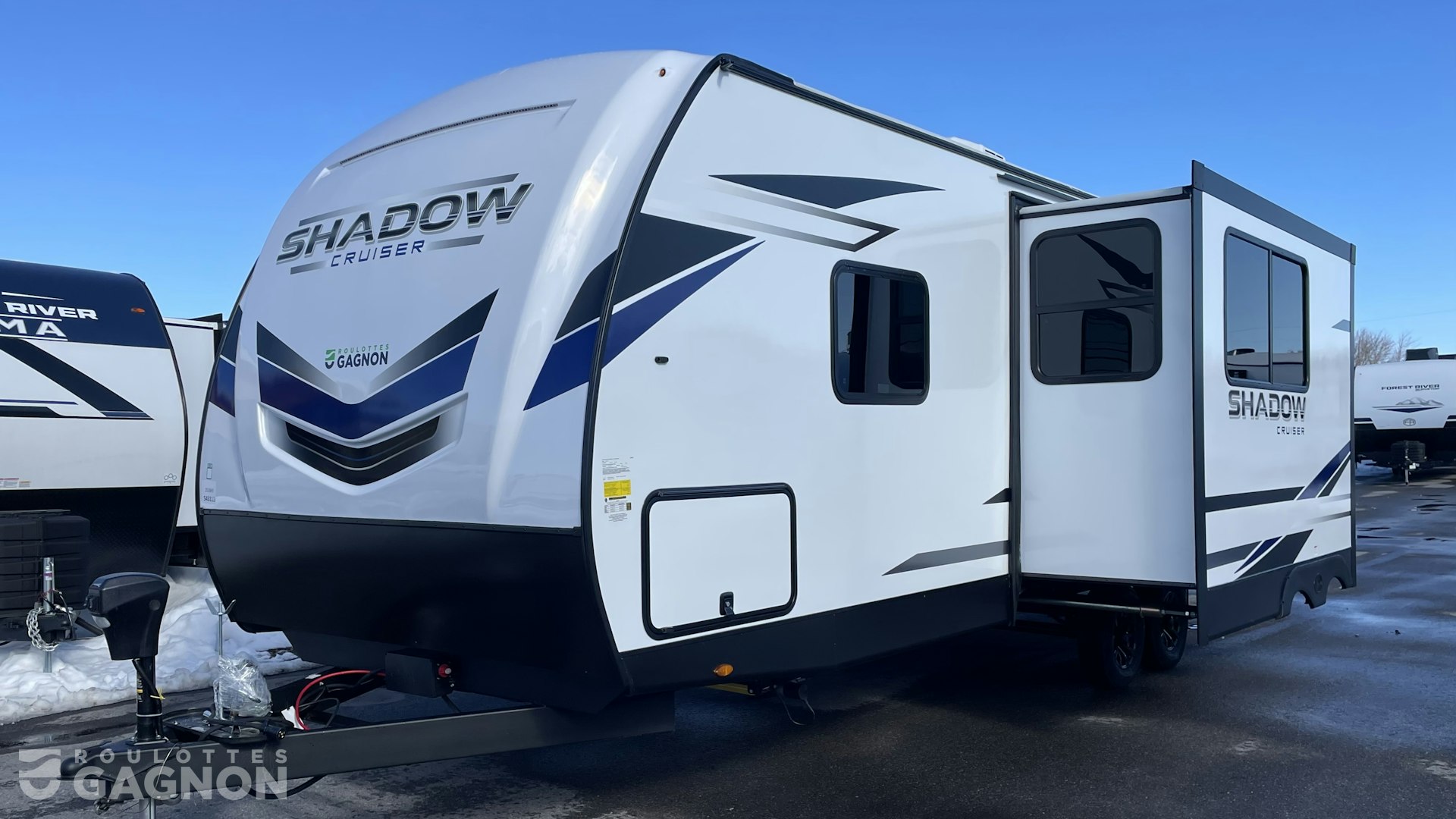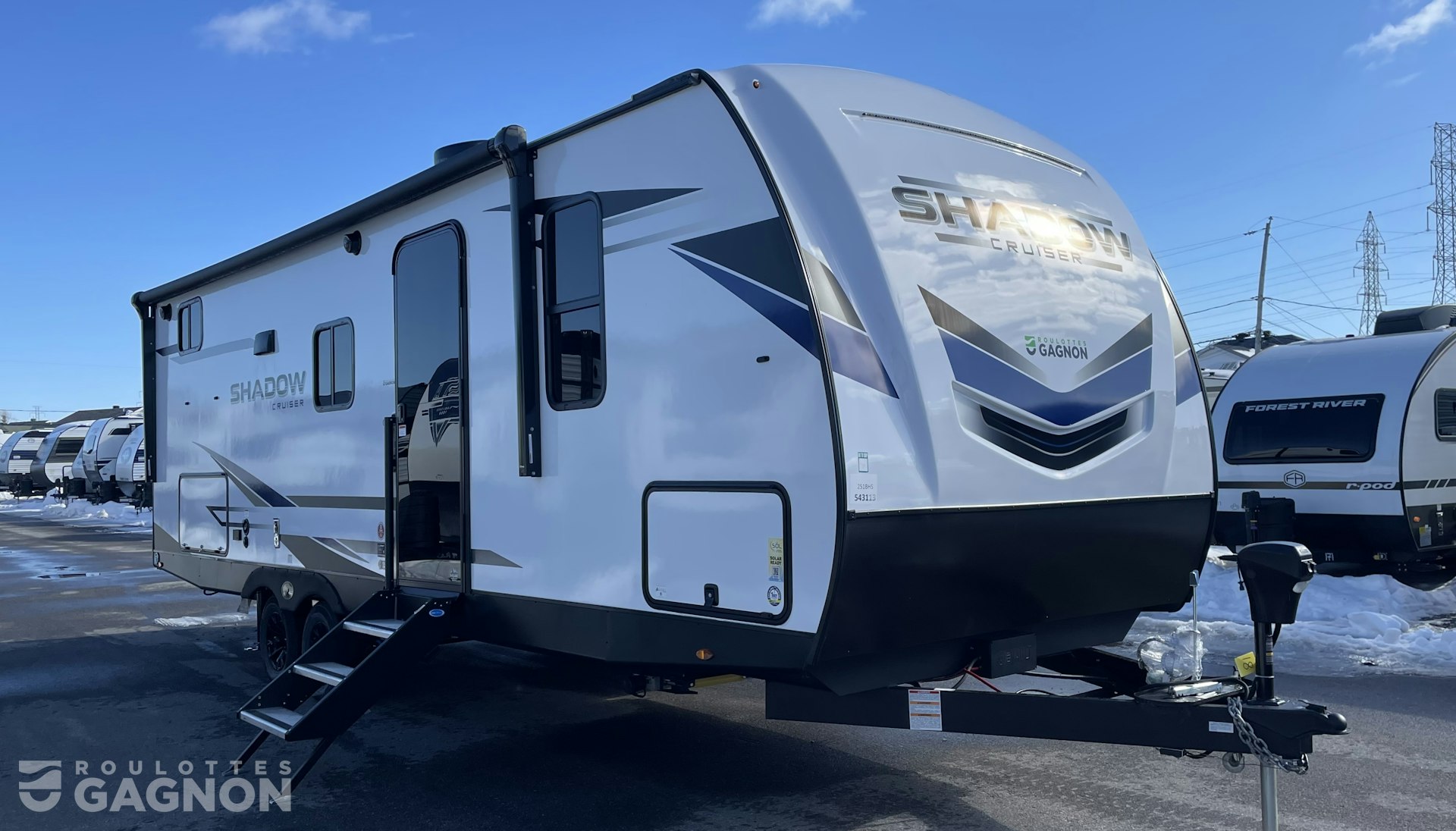Roulotte Shadow Cruiser 251 BHS 2025 neuve à vendre. Cette roulotte de voyage fabriquée par Cruiser RV est idéale pour une famille et peut coucher jusqu’à 8 personnes. La Shadow Cruiser 251 BHS mesure 30,5 pieds et pèse 6 204 lb, son revêtement est en fibre de verre sur Azdel et les options suivantes sont incluses : jack de pole électrique, vérins stabilisateurs auto-nivelants, préparation pour caméra de recul, auvent électrique, marche pied en un bloc (solid step), prise câble ou satellite, bluetooth, prise USB, radio, hauts parleurs extérieurs, éclairage au DEL, cuisinette extérieure, climatiseur, puits de lumière, mags, spray port, chauffe-eau instantané, éclairage à intensité variable, panneau solaire, foyer électrique et prises usb c.