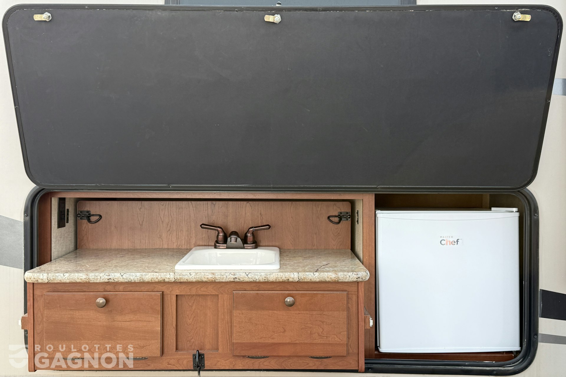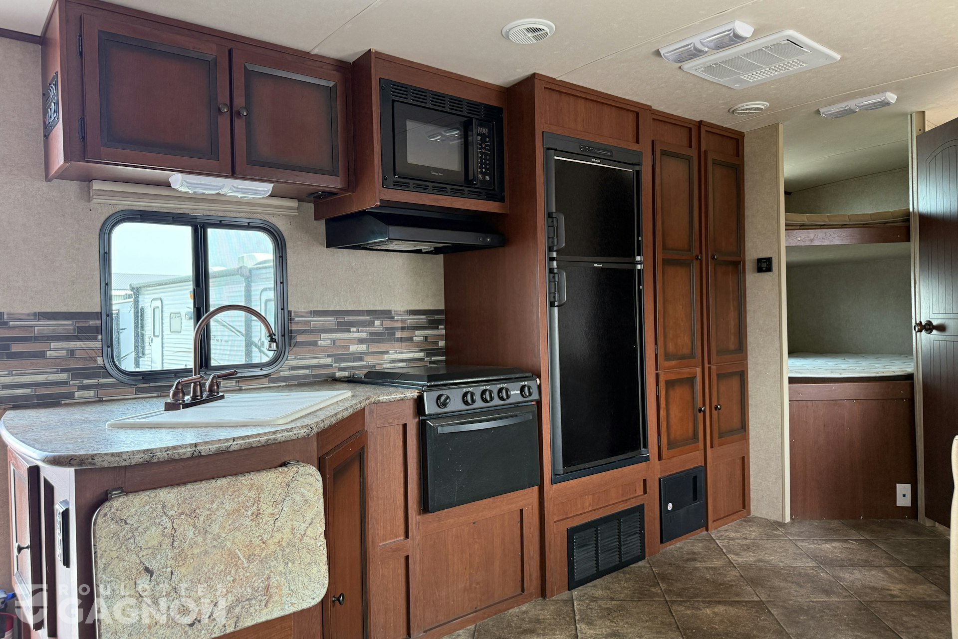 Note: Nous nous efforçons pour décrire les spécifications et les options des roulottes affichées sur notre site le plus précisément possible, toutefois, des erreurs peuvent se glisser. Nous sommes désolés si tel était le cas. Les photos sont à titre indicatif seulement. Les couleurs et les options peuvent varier selon les derniers changements apportés par le fabricant.