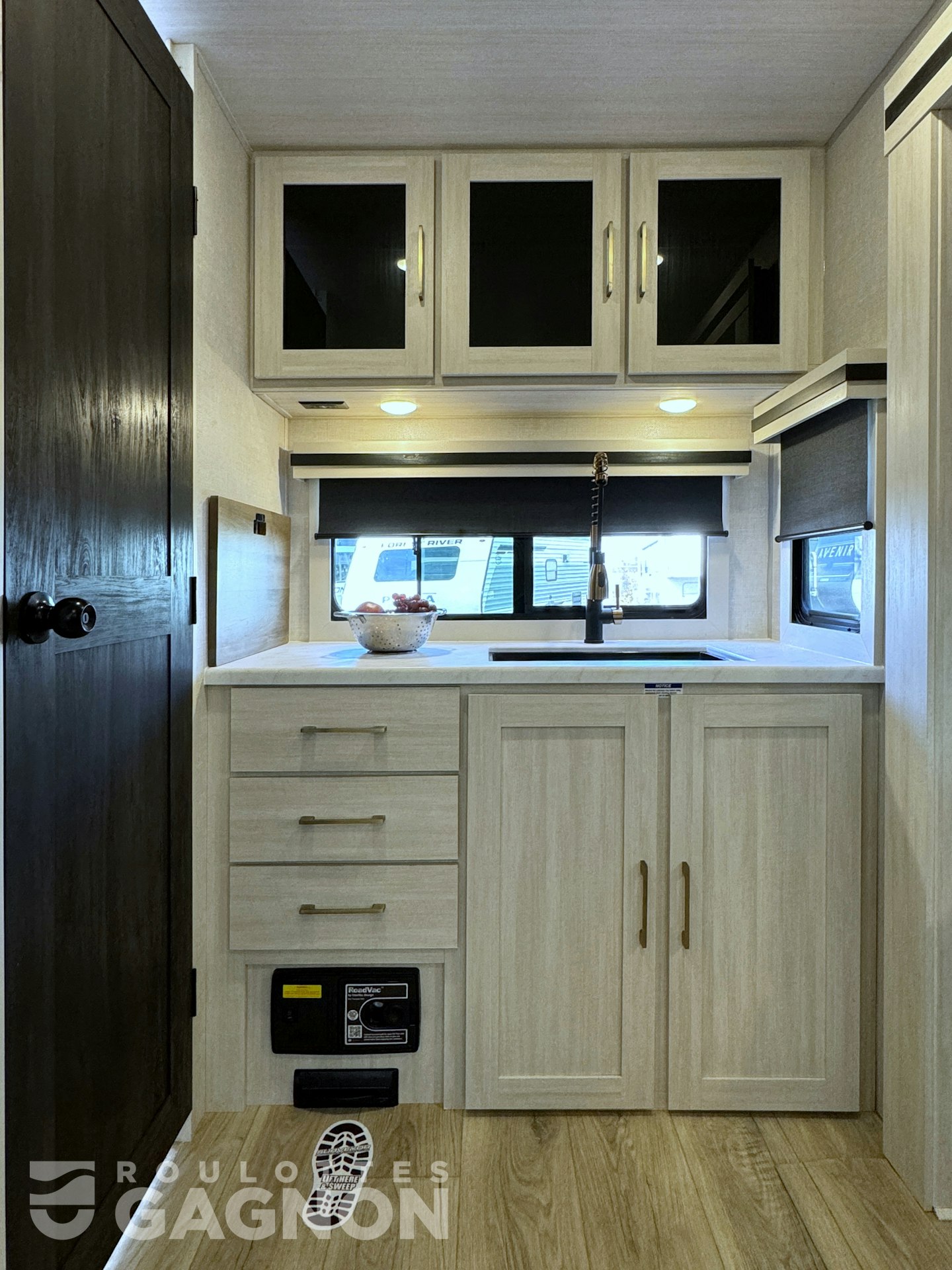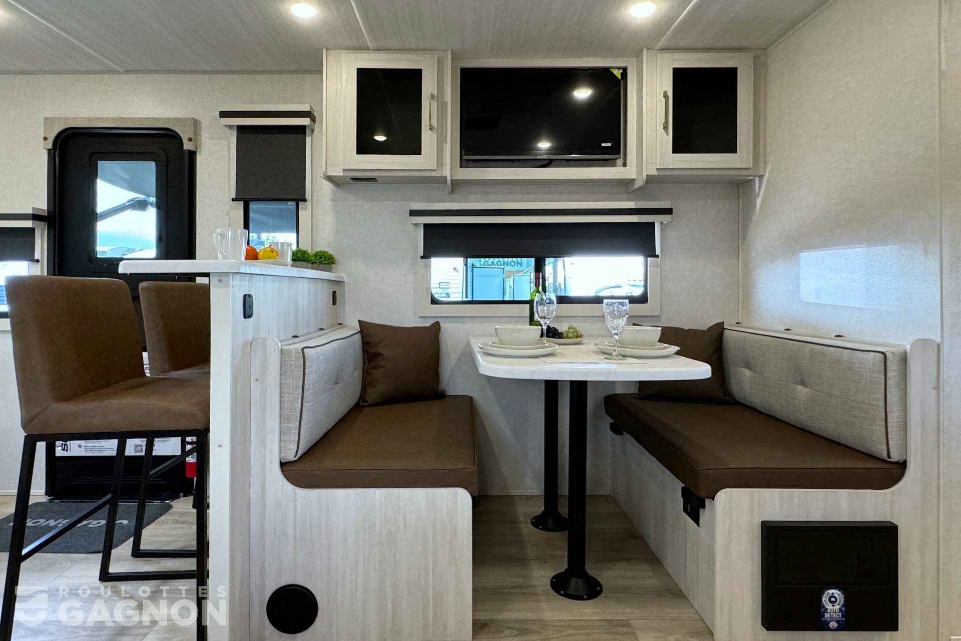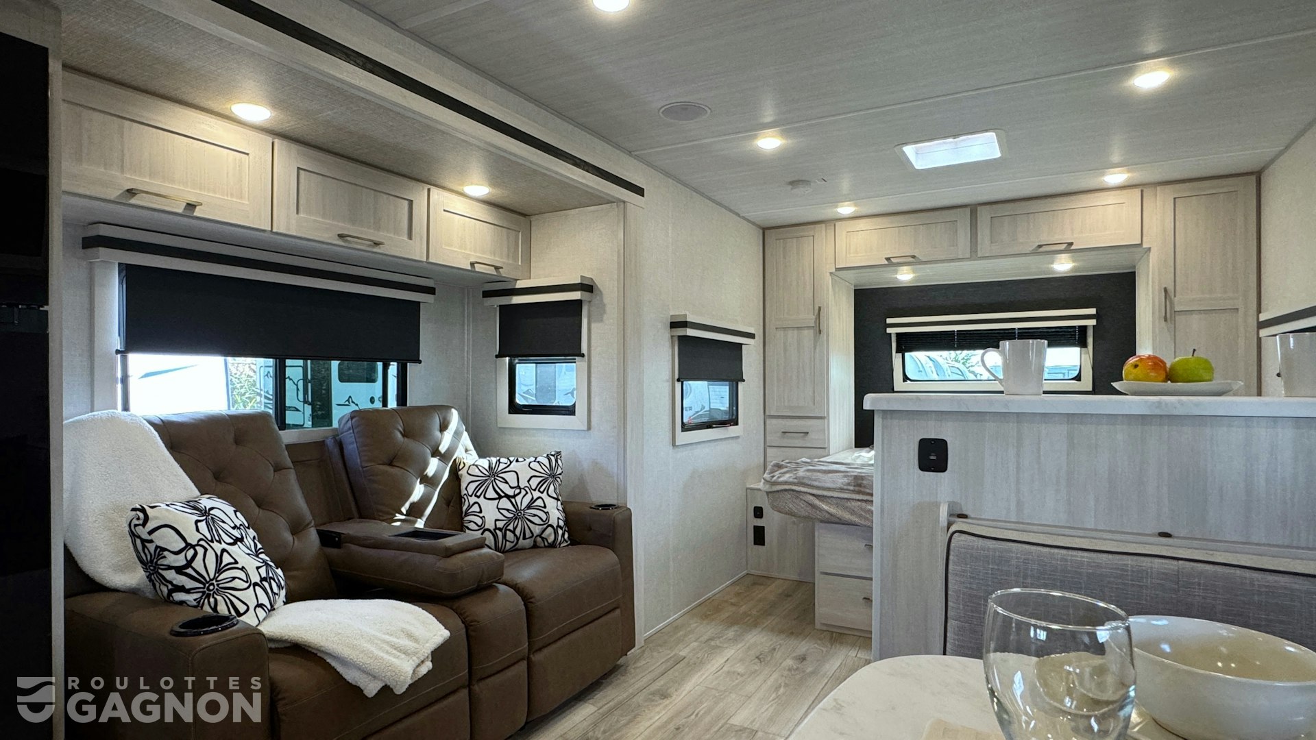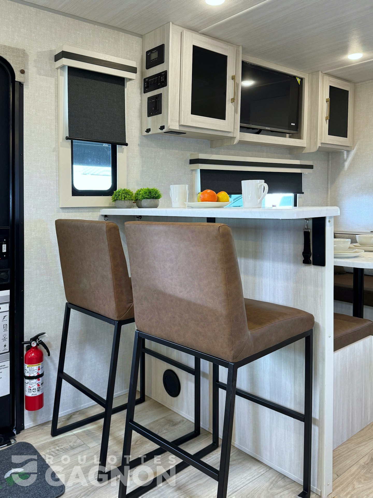 Note: Nous nous efforçons pour décrire les spécifications et les options des roulottes affichées sur notre site le plus précisément possible, toutefois, des erreurs peuvent se glisser. Nous sommes désolés si tel était le cas. Les photos sont à titre indicatif seulement. Les couleurs et les options peuvent varier selon les derniers changements apportés par le fabricant.