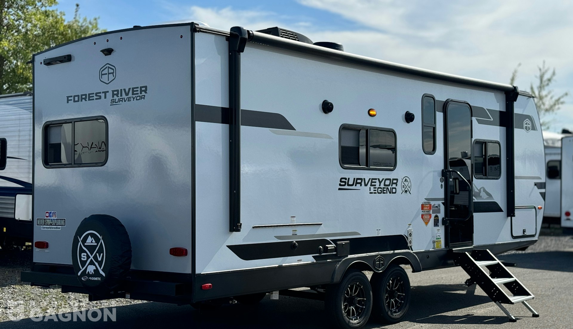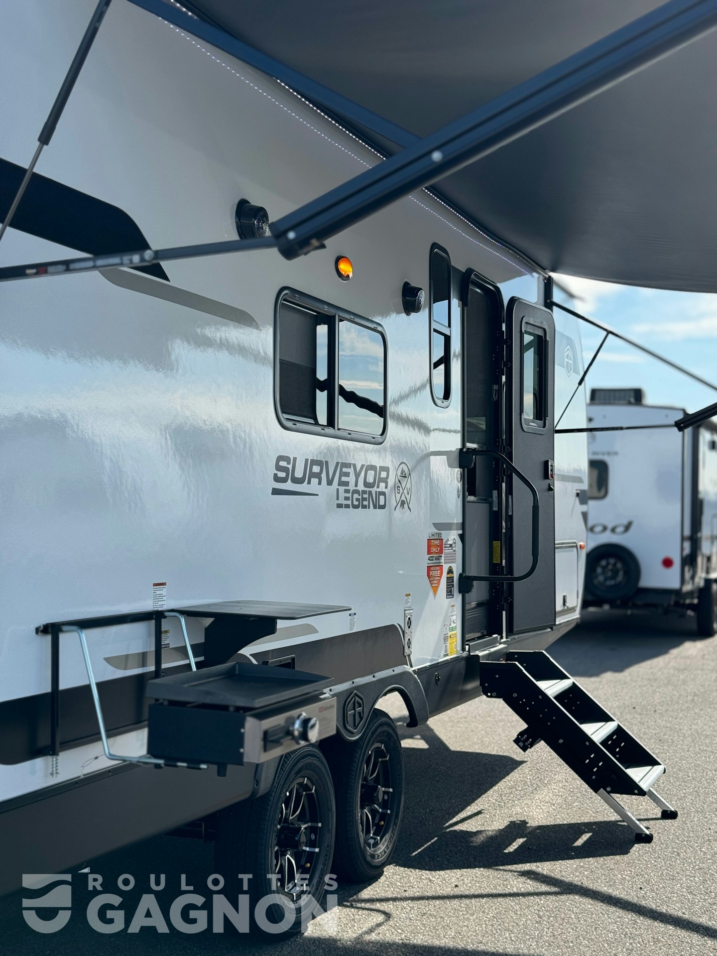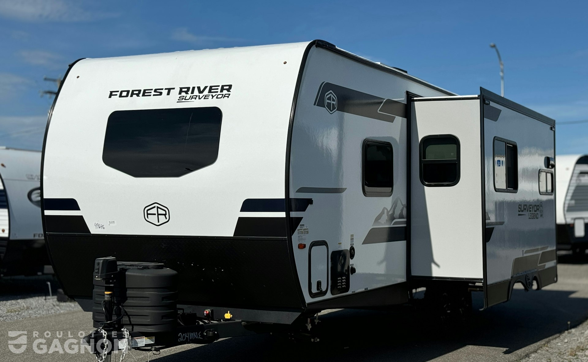 Roulotte Surveyor 204 MKLE 2026 neuve à vendre. Cette roulotte de voyage fabriquée par Forest River est idéale pour un couple et peut coucher jusqu’à 4 personnes. La Surveyor 204 MKLE mesure 27 pieds et pèse 5 493 lb, son revêtement est en fibre de verre sur Azdel et les options suivantes sont incluses : jack de pole électrique, vérins stabilisateurs manuels, préparation pour caméra de recul, auvent électrique, marche pied en un bloc (solid step), prise câble ou satellite, bluetooth, prise USB, téléviseur, radio, hauts parleurs extérieurs, éclairage au DEL, climatiseur, ventilateur de plafond, puits de lumière, douche extérieure, mags, panneau solaire 400 w, hitch arrière, chauffe-eau instantané, prises usb c, moniteur de pression des pneus et balayeuse centrale.