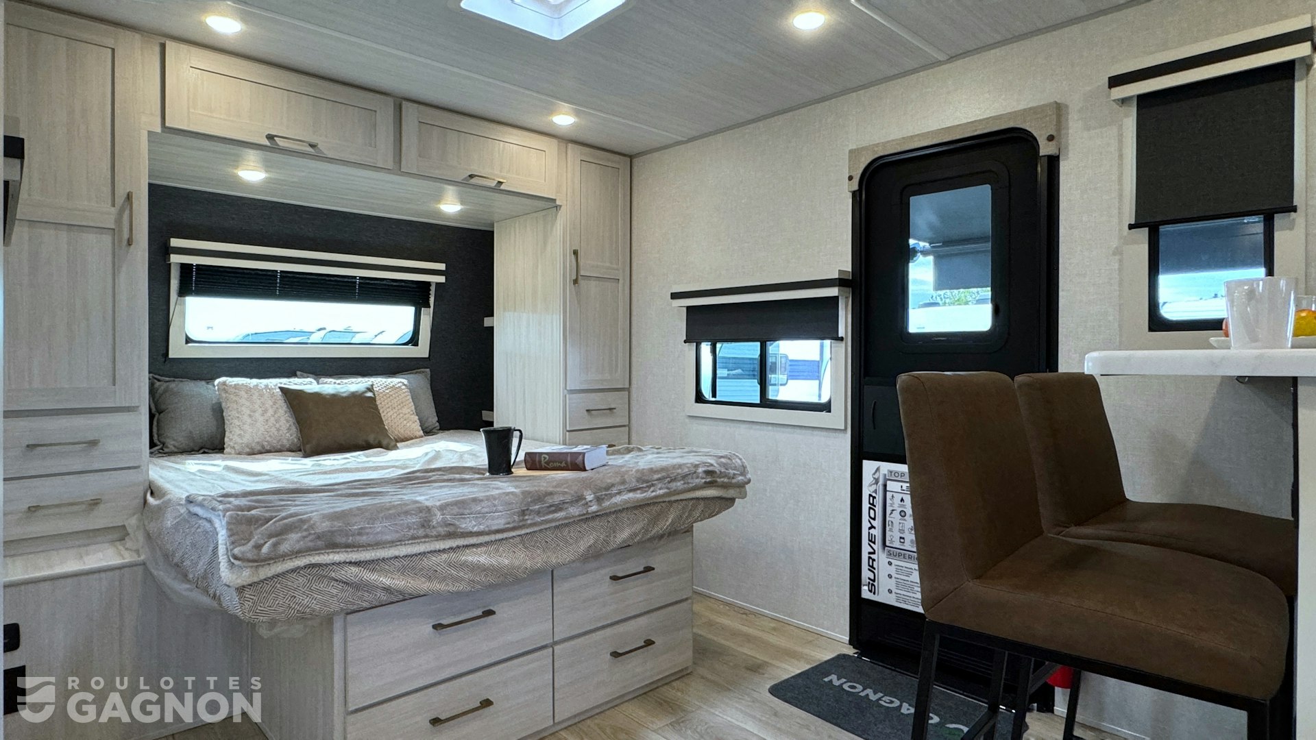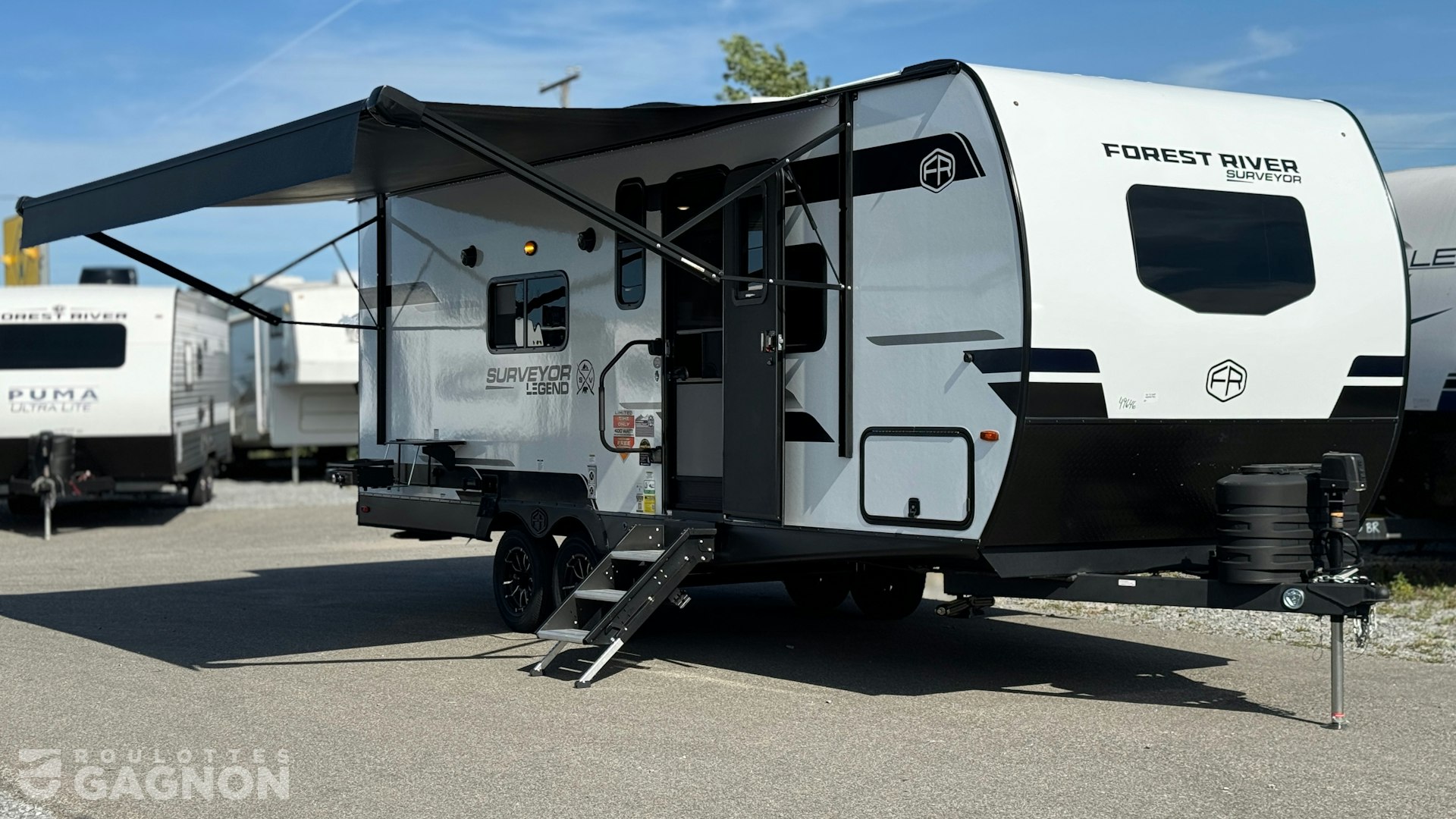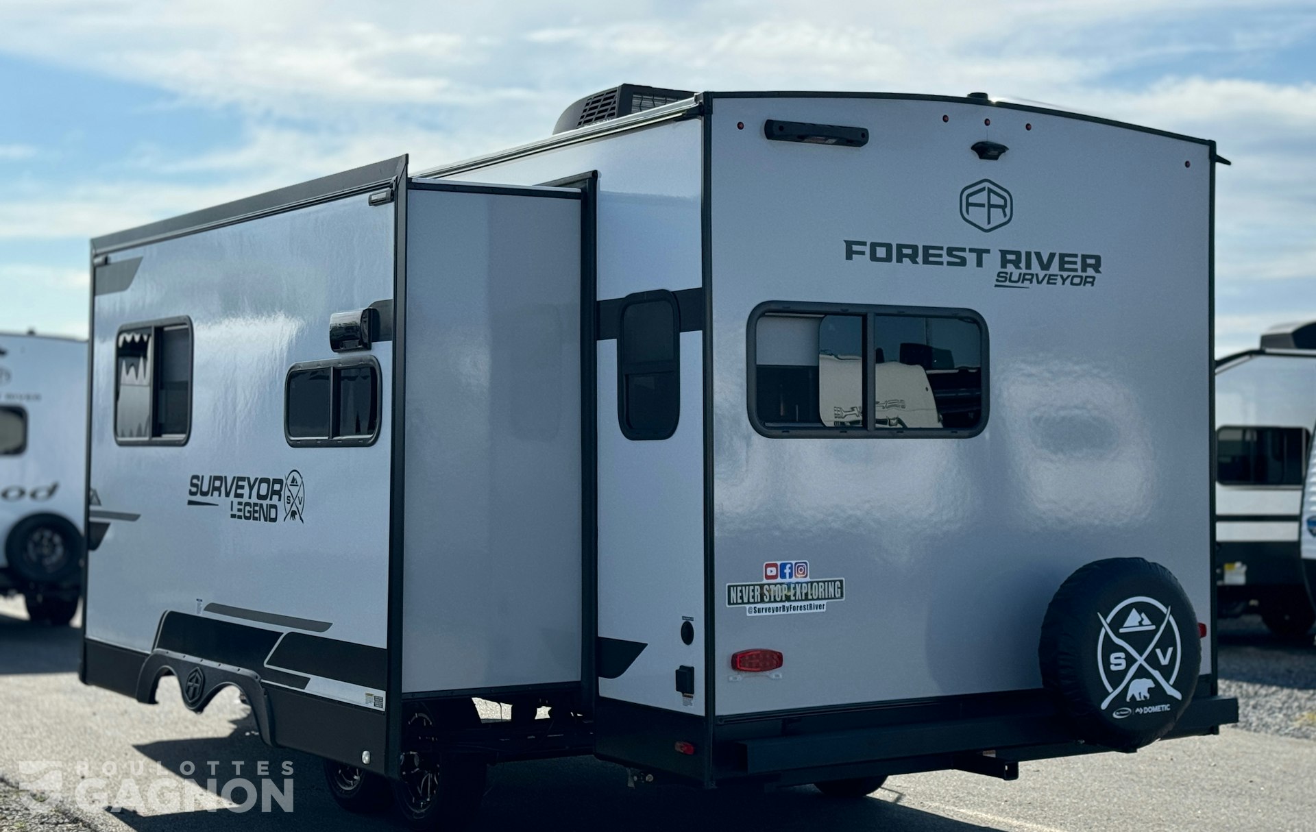 Roulotte Surveyor 204 MKLE 2026 neuve à vendre. Cette roulotte de voyage fabriquée par Forest River est idéale pour un couple et peut coucher jusqu’à 4 personnes. La Surveyor 204 MKLE mesure 27 pieds et pèse 5 493 lb, son revêtement est en fibre de verre sur Azdel et les options suivantes sont incluses : jack de pole électrique, vérins stabilisateurs manuels, préparation pour caméra de recul, auvent électrique, marche pied en un bloc (solid step), prise câble ou satellite, bluetooth, prise USB, téléviseur, radio, hauts parleurs extérieurs, éclairage au DEL, climatiseur, ventilateur de plafond, puits de lumière, douche extérieure, mags, panneau solaire 400 w, hitch arrière, chauffe-eau instantané, prises usb c, moniteur de pression des pneus et balayeuse centrale.