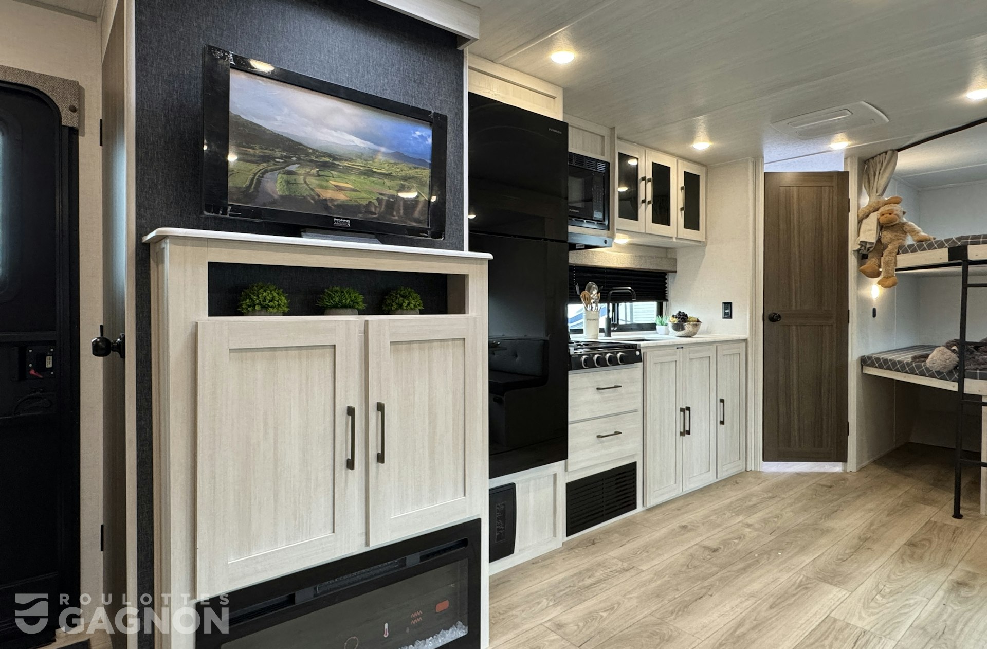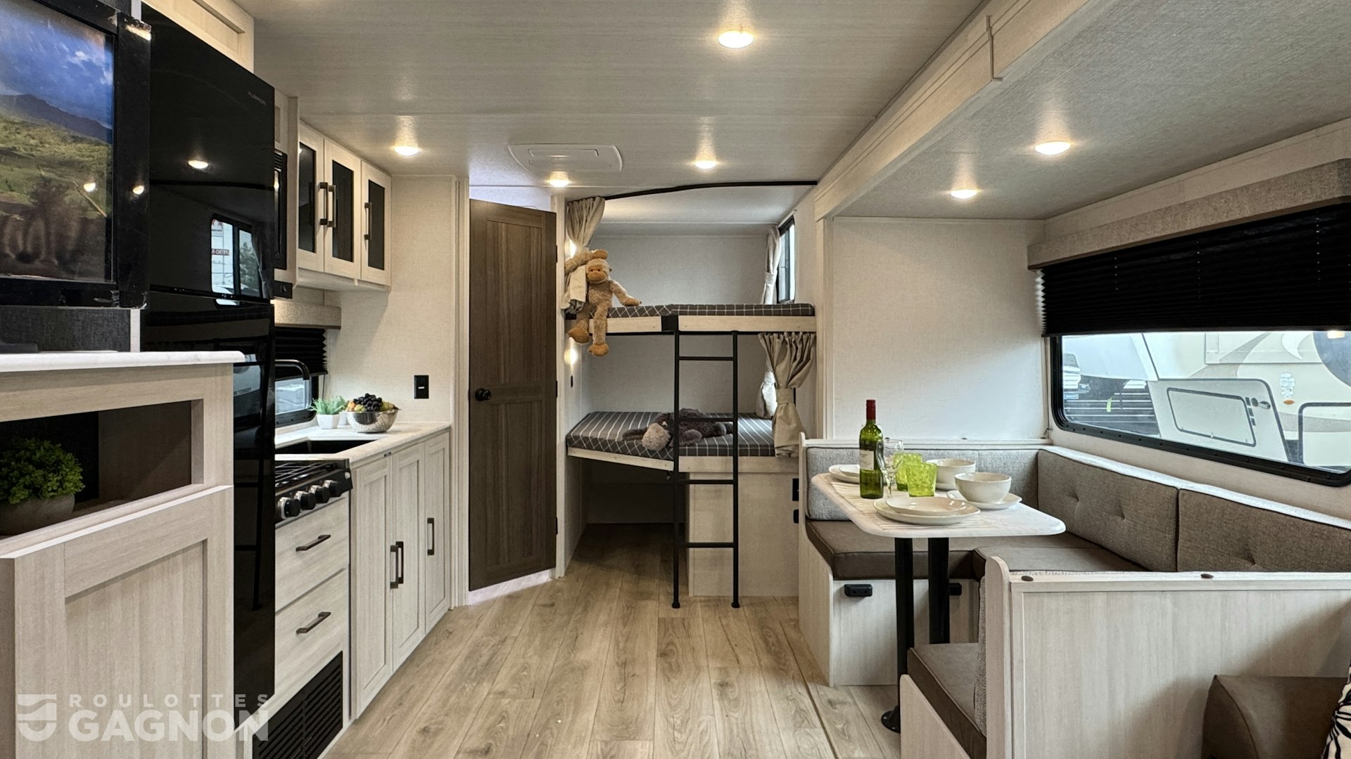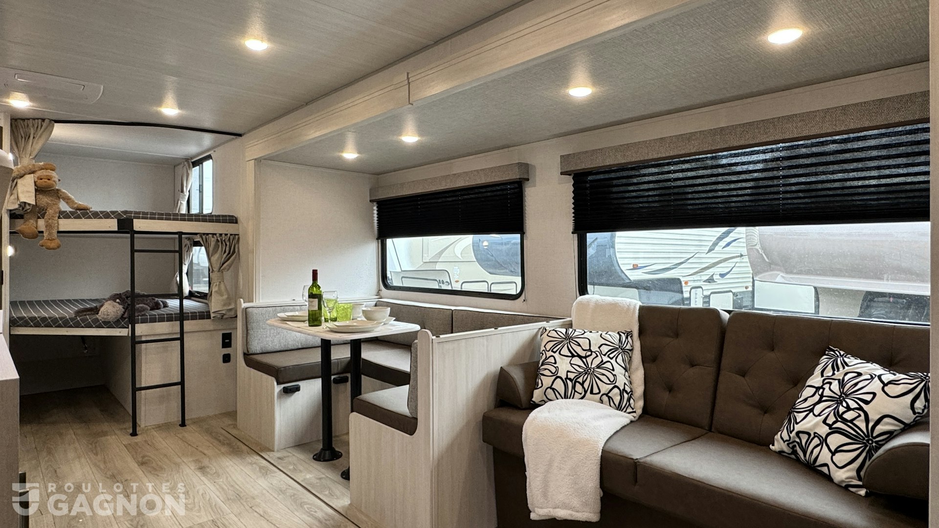 Note: Nous nous efforçons pour décrire les spécifications et les options des roulottes affichées sur notre site le plus précisément possible, toutefois, des erreurs peuvent se glisser. Nous sommes désolés si tel était le cas. Les photos sont à titre indicatif seulement. Les couleurs et les options peuvent varier selon les derniers changements apportés par le fabricant.