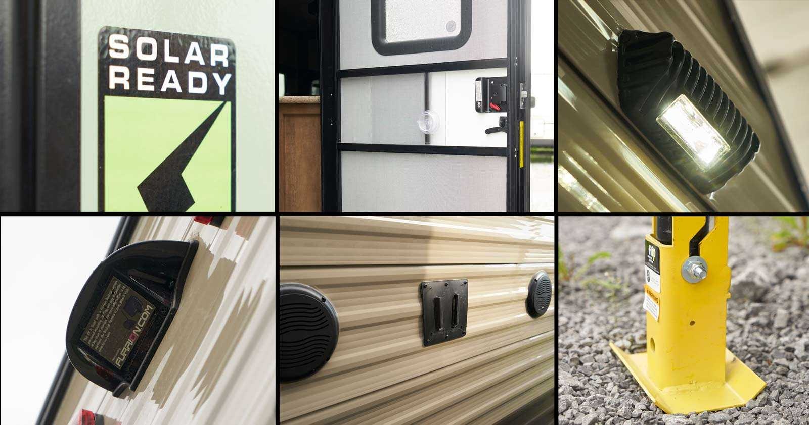 Une caméra de recul sur une voiture peut être bien pratique sauf quand on traine une roulotte. La caméra serait alors beaucoup plus utile sur le derrière de la roulotte. C’est pourquoi Forest River offre sur la plupart de leur modèle une base d’accueil pour caméra de recul. Si vous le désirez, vous pouvez donc ajouter une caméra de recul facilement comme l’électricité et les branchements sont déjà en place. La communication entre la caméra et l’écran dans le véhicule se fait sans fil. Voilà qui peut rendre de précieux services pour éviter des accrochages et des incidents.