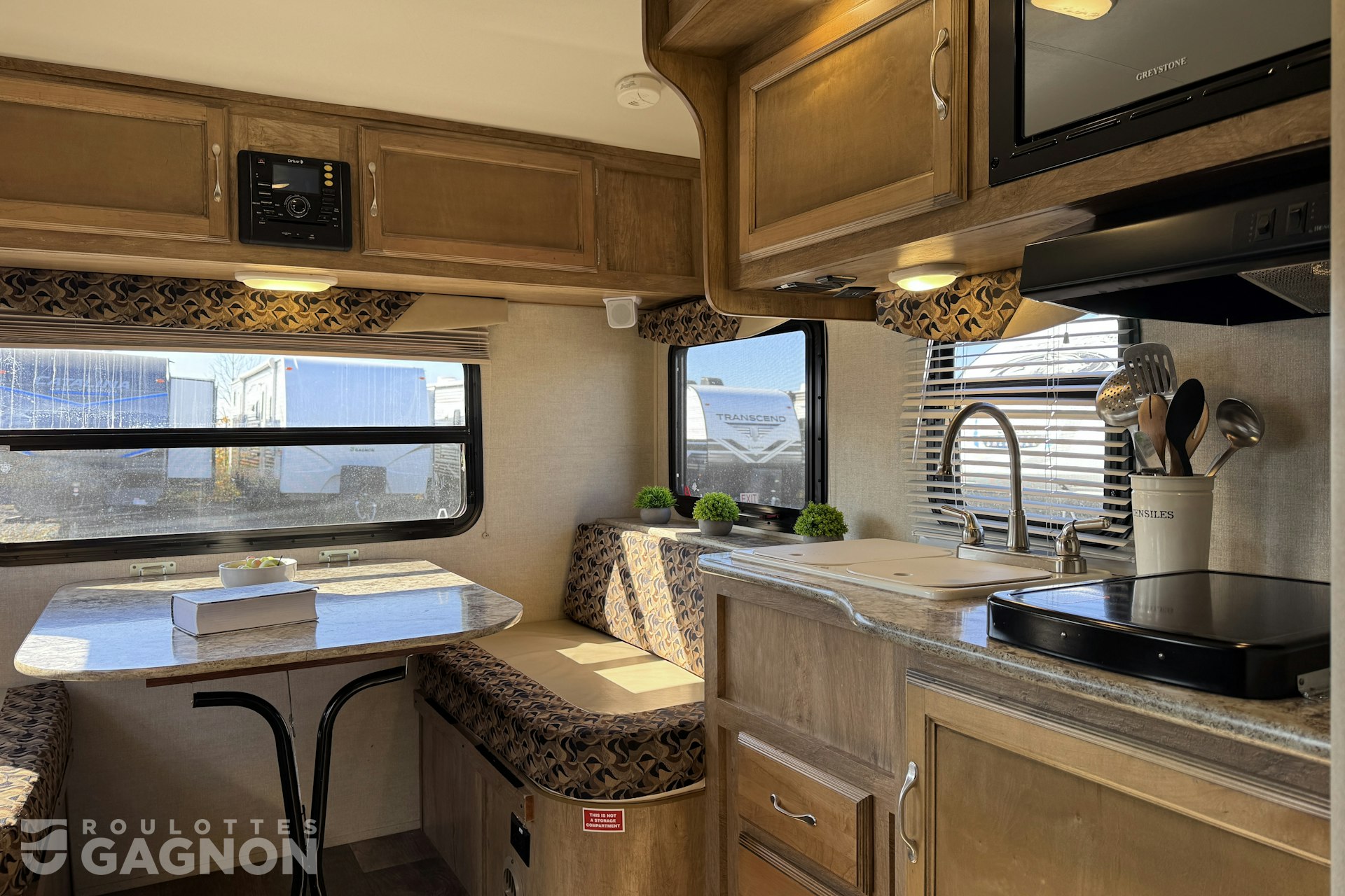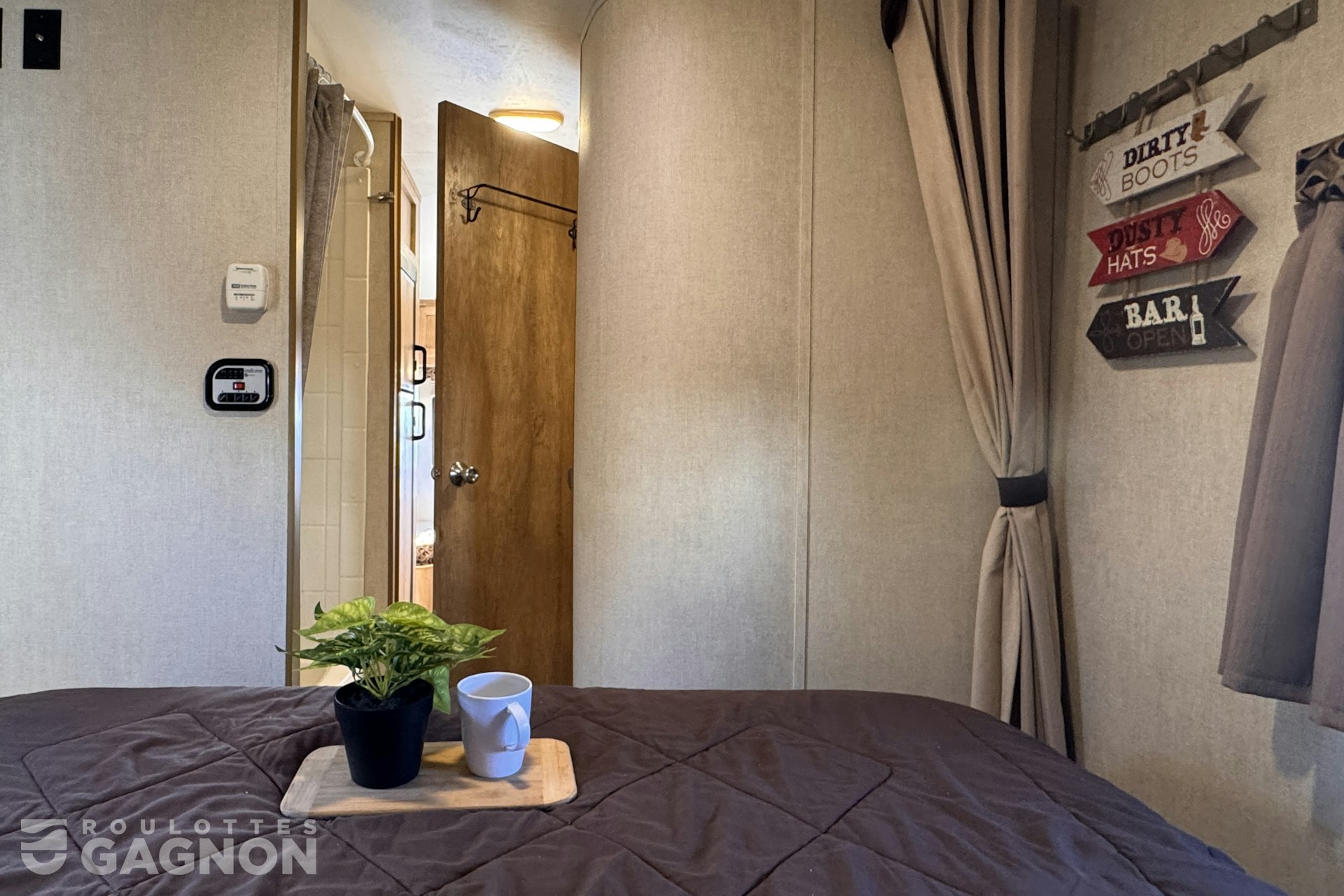 Note: Nous nous efforçons pour décrire les spécifications et les options des roulottes affichées sur notre site le plus précisément possible, toutefois, des erreurs peuvent se glisser. Nous sommes désolés si tel était le cas. Les photos sont à titre indicatif seulement. Les couleurs et les options peuvent varier selon les derniers changements apportés par le fabricant.