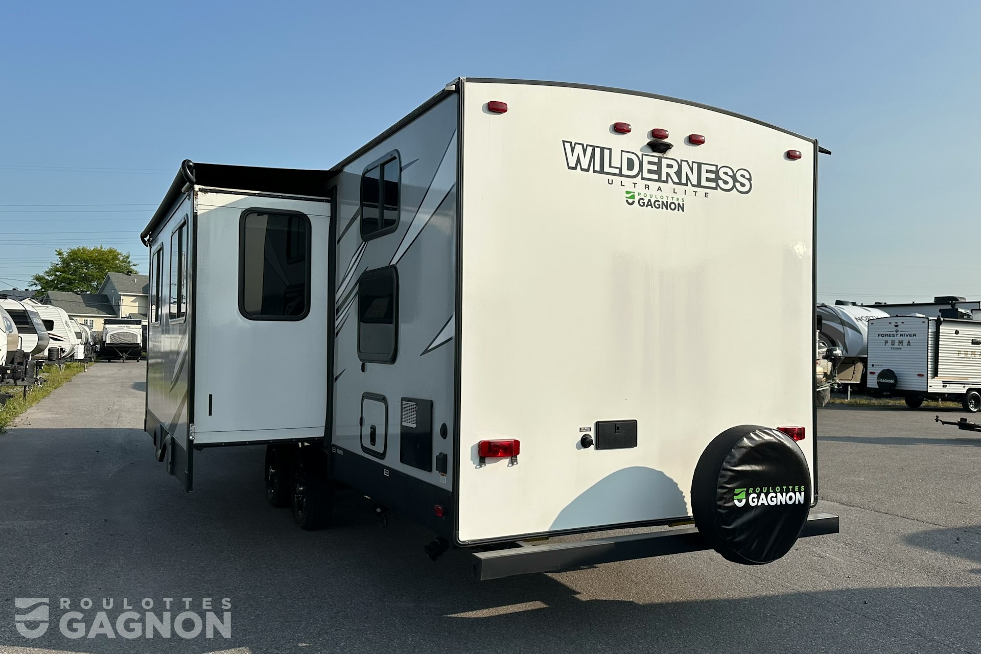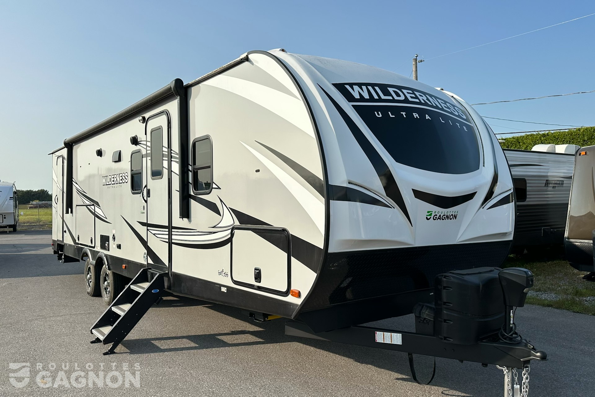Roulotte Wilderness 3125 BH 2020 usagée à vendre. Cette roulotte de voyage fabriquée par Fleetwood est idéale pour une famille et peut coucher jusqu’à 10 personnes. La Wilderness 3125 BH mesure 36 pieds et pèse 6778 lb, son revêtement est en fibre de verre sur Azdel et les options suivantes sont incluses : jack de pole électrique, vérins stabilisateurs électriques, préparation pour caméra de recul, auvent électrique, marche pied en un bloc (solid step), prise câble ou satellite, prise pour panneau solaire, bluetooth, radio, hauts parleurs extérieurs, éclairage au DEL, cuisinette extérieure, climatiseur, puits de lumière, douche extérieure, mags, slide topper et balayeuse centrale.