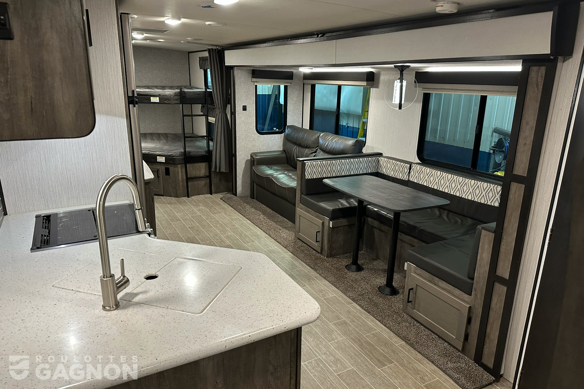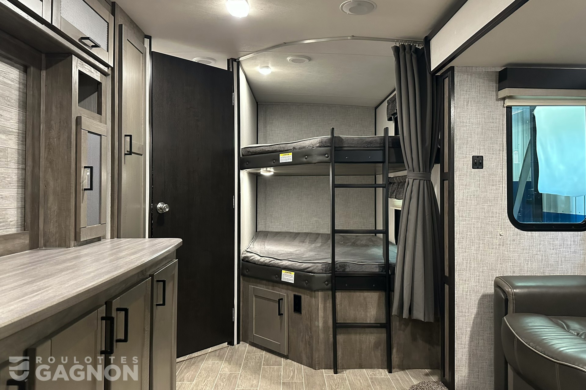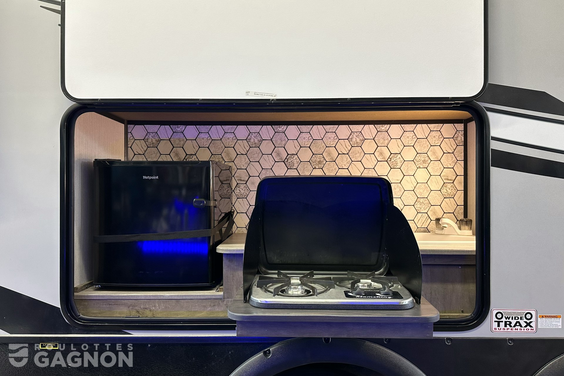 Note: Nous nous efforçons pour décrire les spécifications et les options des roulottes affichées sur notre site le plus précisément possible, toutefois, des erreurs peuvent se glisser. Nous sommes désolés si tel était le cas. Les photos sont à titre indicatif seulement. Les couleurs et les options peuvent varier selon les derniers changements apportés par le fabricant.