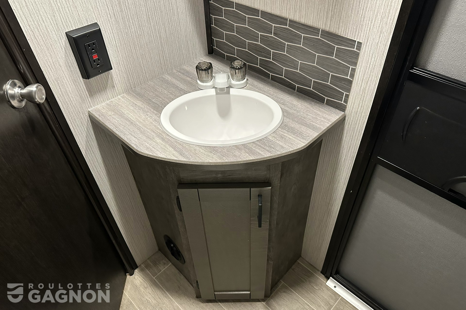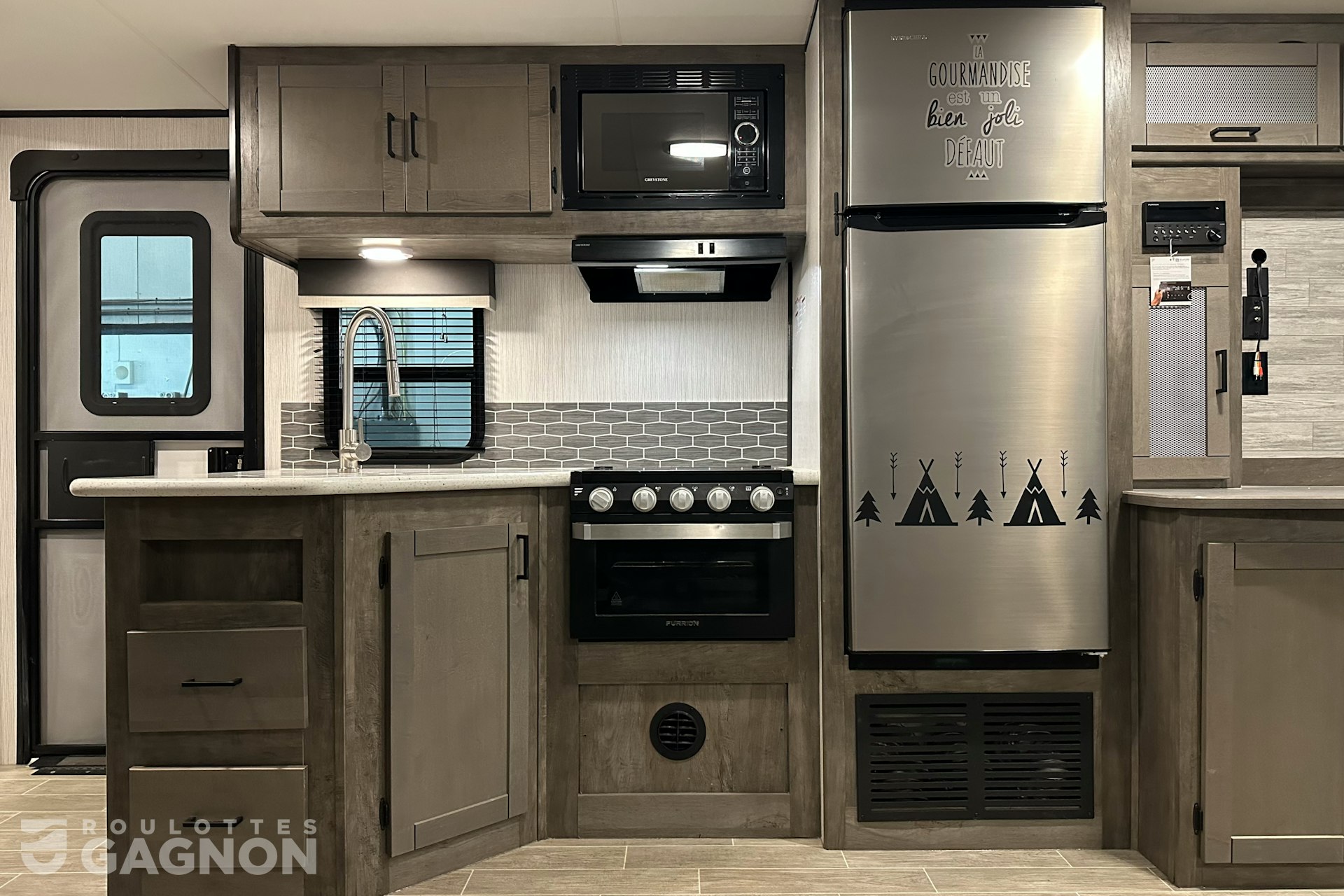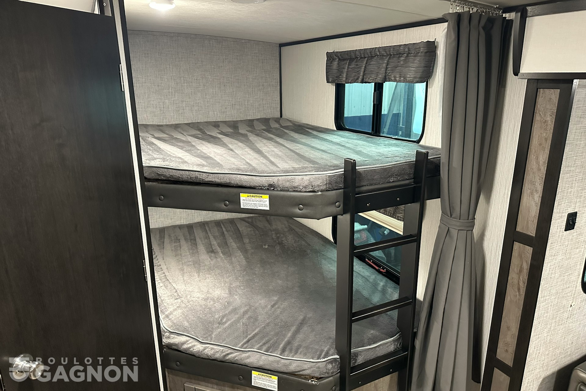Note: Nous nous efforçons pour décrire les spécifications et les options des roulottes affichées sur notre site le plus précisément possible, toutefois, des erreurs peuvent se glisser. Nous sommes désolés si tel était le cas. Les photos sont à titre indicatif seulement. Les couleurs et les options peuvent varier selon les derniers changements apportés par le fabricant.