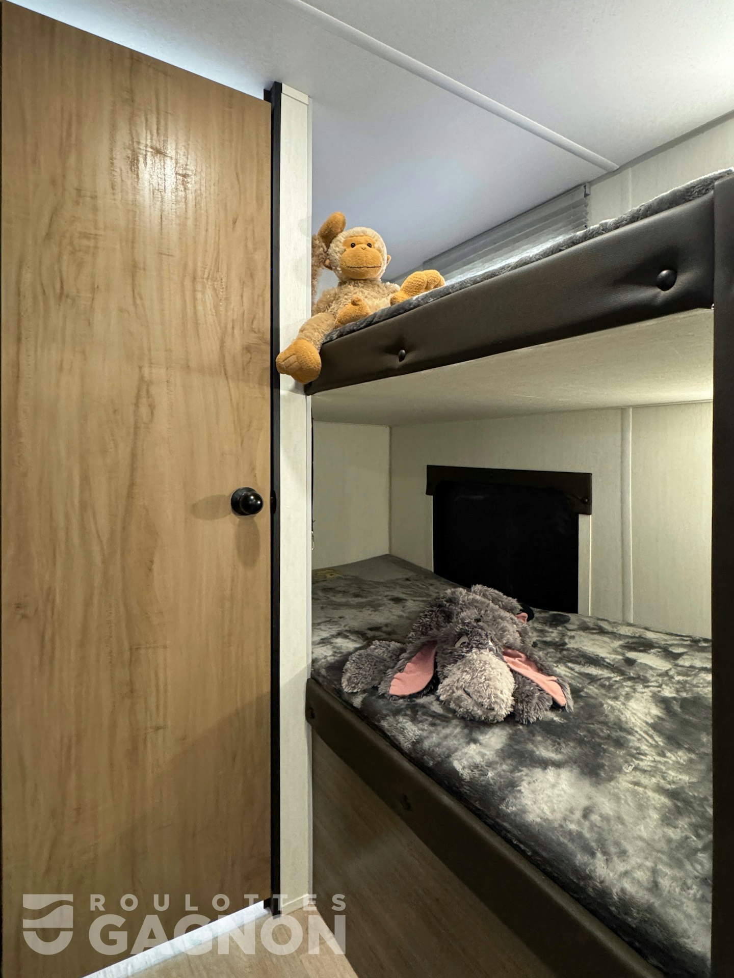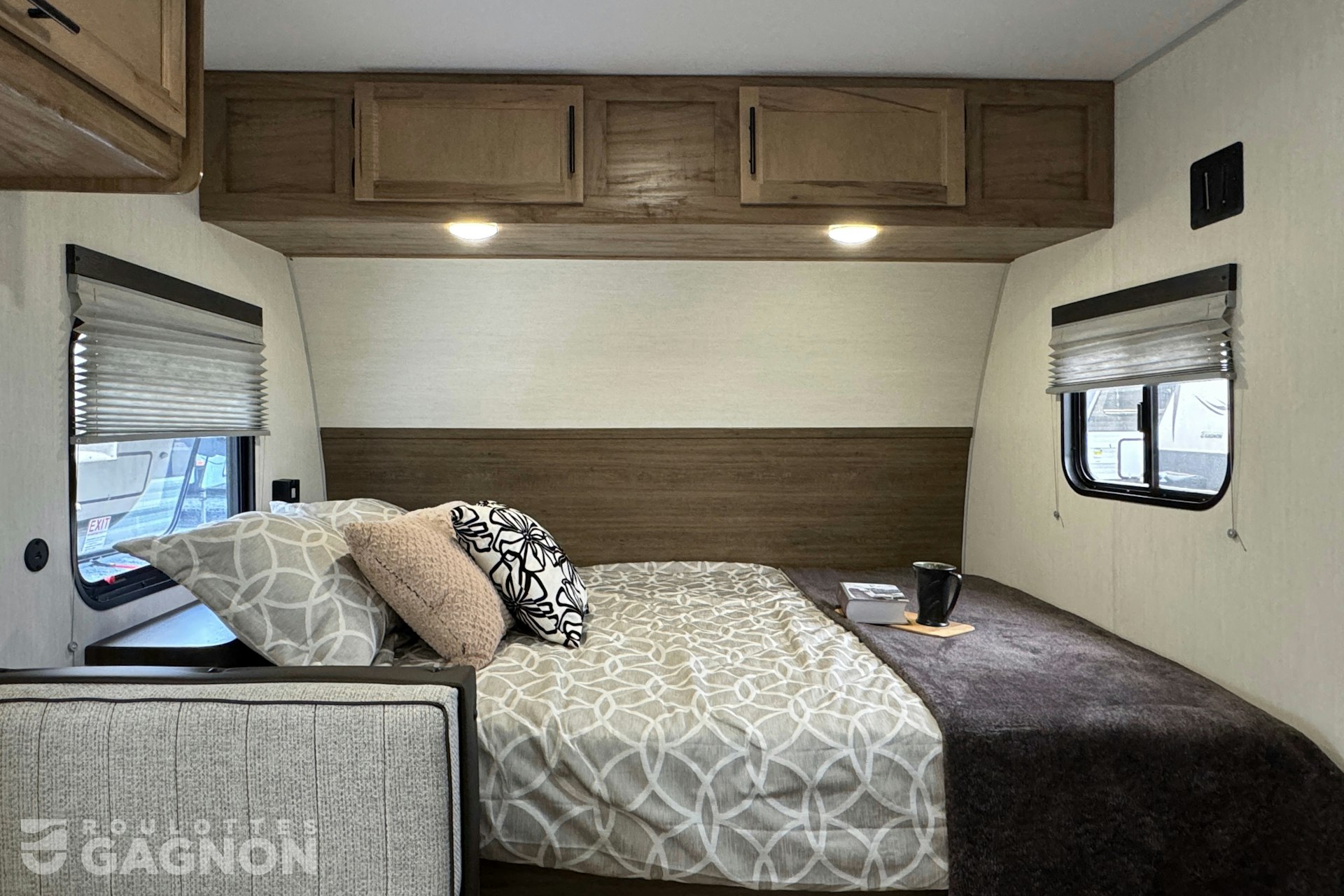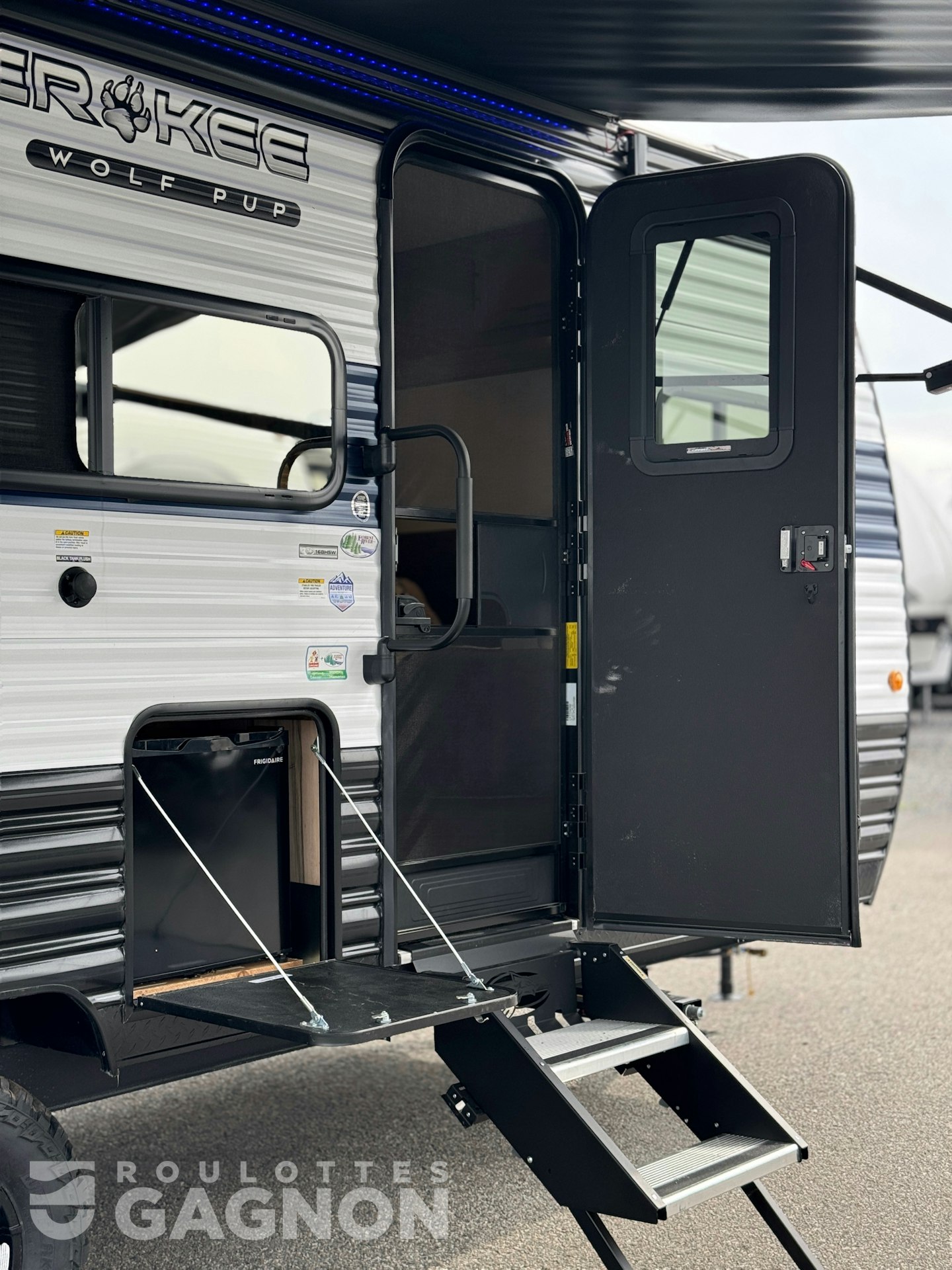 Roulotte Wolf Pup 16 BHSW 2026 neuve à vendre. Cette roulotte de voyage fabriquée par Forest River est idéale pour une famille et peut coucher jusqu’à 5 personnes. La Wolf Pup 16 BHSW mesure 21,9 pieds et pèse 3 575 lb, son revêtement est en aluminium et les options suivantes sont incluses : vérins stabilisateurs manuels, préparation pour caméra de recul, caméra de recul incluse, auvent électrique, marche pied en un bloc (solid step), prise câble ou satellite, bluetooth, prise USB, radio, hauts parleurs extérieurs, éclairage au DEL, climatiseur, douche extérieure, mags, fenêtres à verre énergétique réfléchissant, chauffe-eau instantané, panneau solaire, prises usb c, frigo extérieur et porte cargo.
