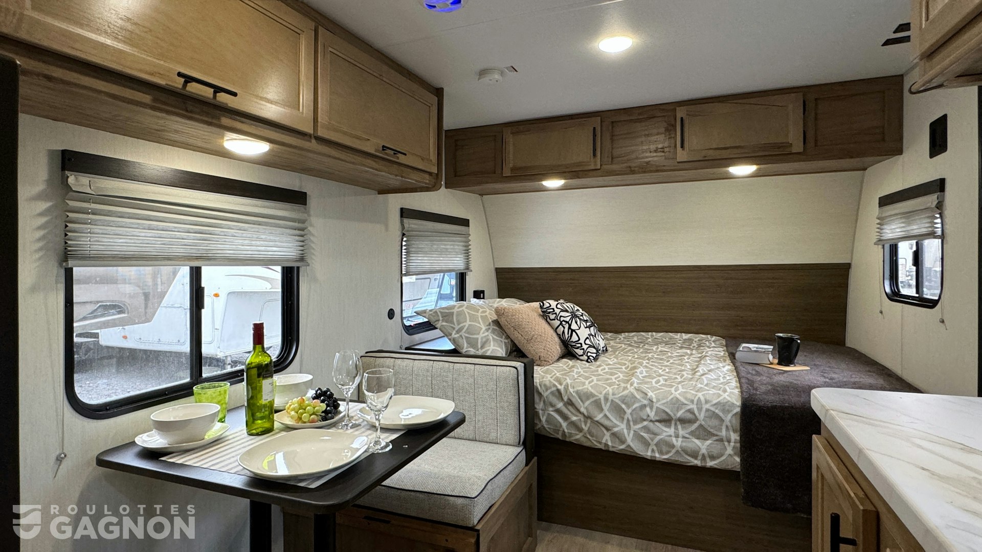 Note: Nous nous efforçons pour décrire les spécifications et les options des roulottes affichées sur notre site le plus précisément possible, toutefois, des erreurs peuvent se glisser. Nous sommes désolés si tel était le cas. Les photos sont à titre indicatif seulement. Les couleurs et les options peuvent varier selon les derniers changements apportés par le fabricant.