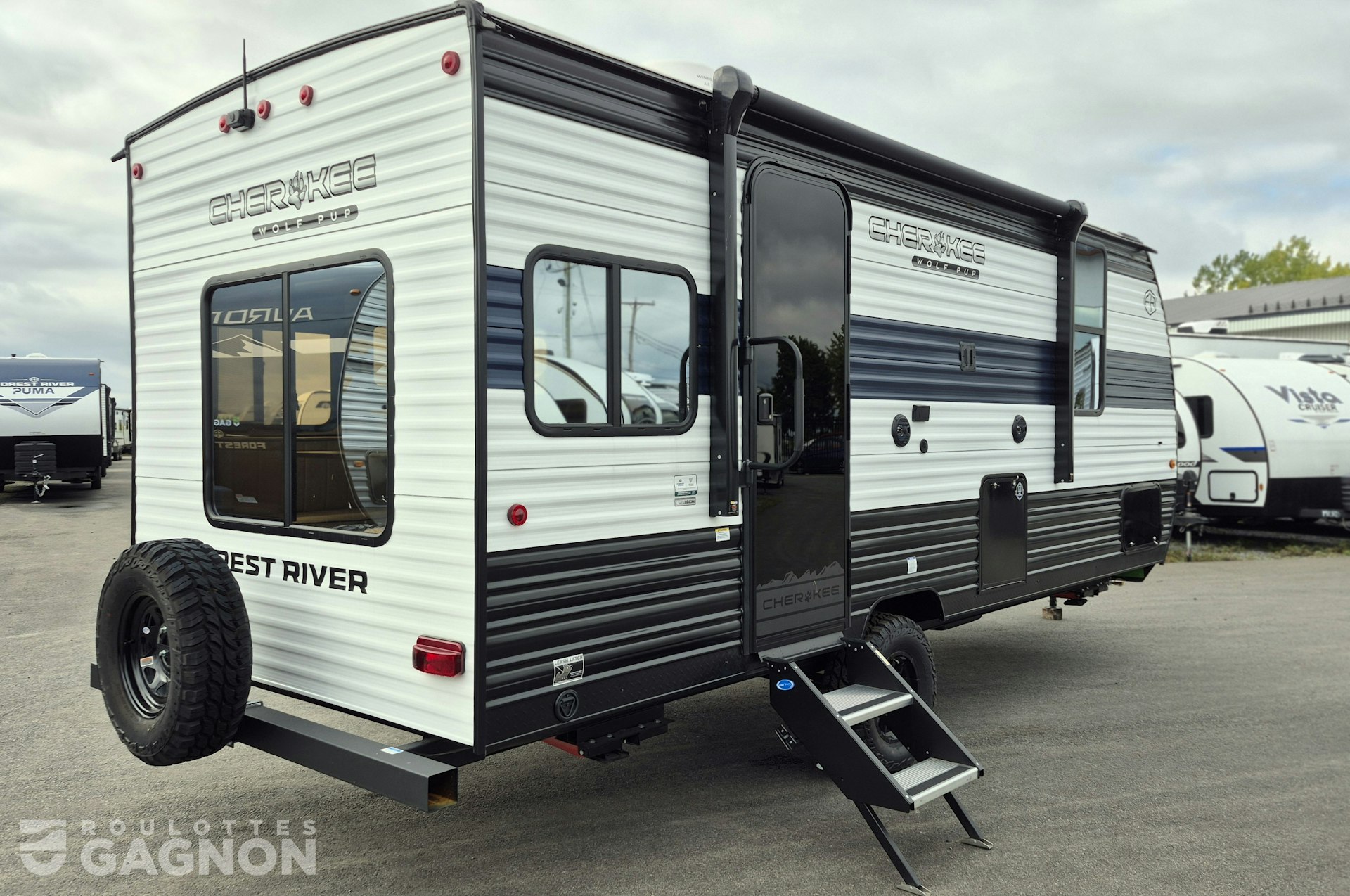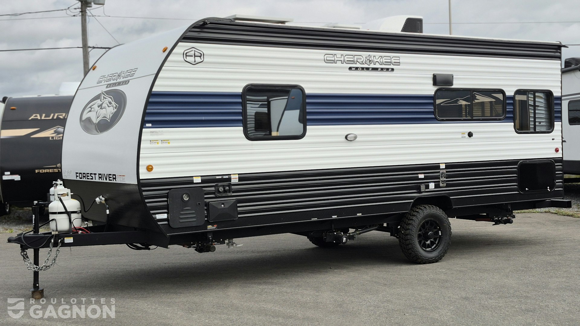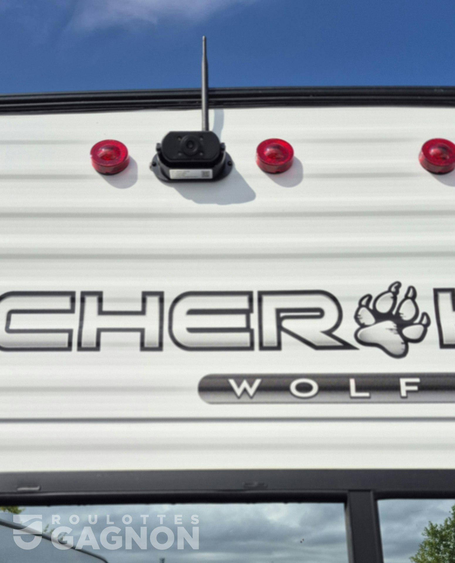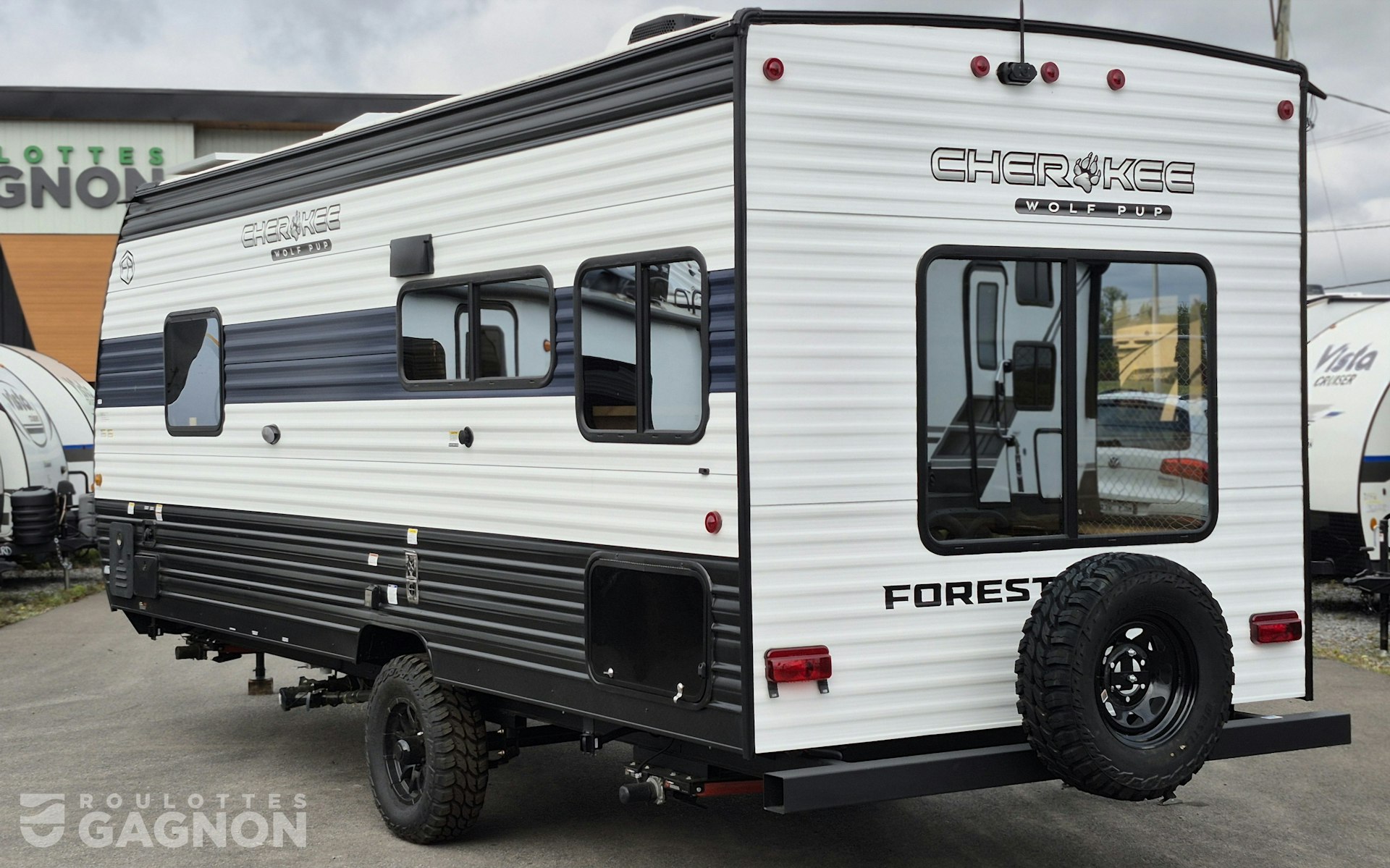 Roulotte Wolf Pup 16 CM 2026 neuve à vendre. Cette roulotte de voyage fabriquée par Forest River est idéale pour un couple et peut coucher jusqu’à 4 personnes. La Wolf Pup 16 CM mesure 23.1 pieds et pèse 3801 lb, son revêtement est en aluminium et les options suivantes sont incluses : vérins stabilisateurs manuels, préparation pour caméra de recul, caméra de recul incluse, auvent électrique, marche pied en un bloc (solid step), prise câble ou satellite, bluetooth, prise USB, radio, hauts parleurs extérieurs, éclairage au DEL, climatiseur, douche extérieure, mags et panneau solaire 200 w.