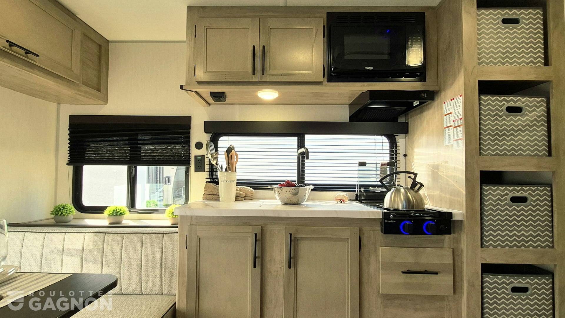 Note: Nous nous efforçons pour décrire les spécifications et les options des roulottes affichées sur notre site le plus précisément possible, toutefois, des erreurs peuvent se glisser. Nous sommes désolés si tel était le cas. Les photos sont à titre indicatif seulement. Les couleurs et les options peuvent varier selon les derniers changements apportés par le fabricant.
