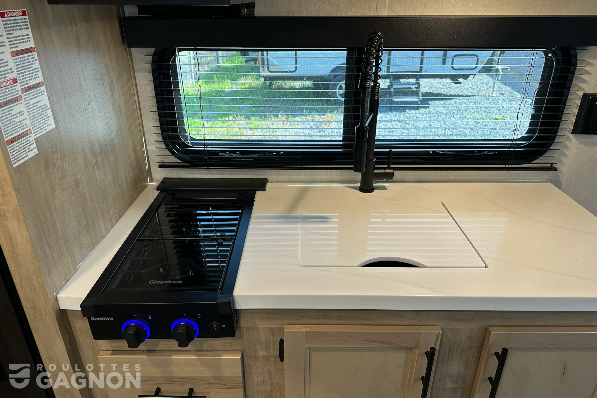Note: Nous nous efforçons pour décrire les spécifications et les options des roulottes affichées sur notre site le plus précisément possible, toutefois, des erreurs peuvent se glisser. Nous sommes désolés si tel était le cas. Les photos sont à titre indicatif seulement. Les couleurs et les options peuvent varier selon les derniers changements apportés par le fabricant.