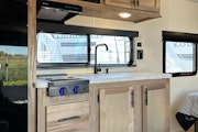 Roulotte Wolf Pup 16 FQW 2025 usagée à vendre. Cette roulotte de voyage fabriquée par Forest River est idéale pour un couple et peut coucher jusqu’à 3 personnes. La Wolf Pup 16 FQW mesure 21.8 pieds et pèse 3592 lb, son revêtement est en aluminium et les options suivantes sont incluses : vérins stabilisateurs manuels, préparation pour caméra de recul, caméra de recul incluse, auvent électrique, marche pied en un bloc (solid step), prise câble ou satellite, bluetooth, prise USB, radio, hauts parleurs extérieurs, éclairage au DEL, climatiseur, douche extérieure, mags, chauffe-eau instantané, prises usb c, panneau solaire, frigo extérieur, ondulateur 150w près du lit et fenêtres à verre énergétique réfléchissant.