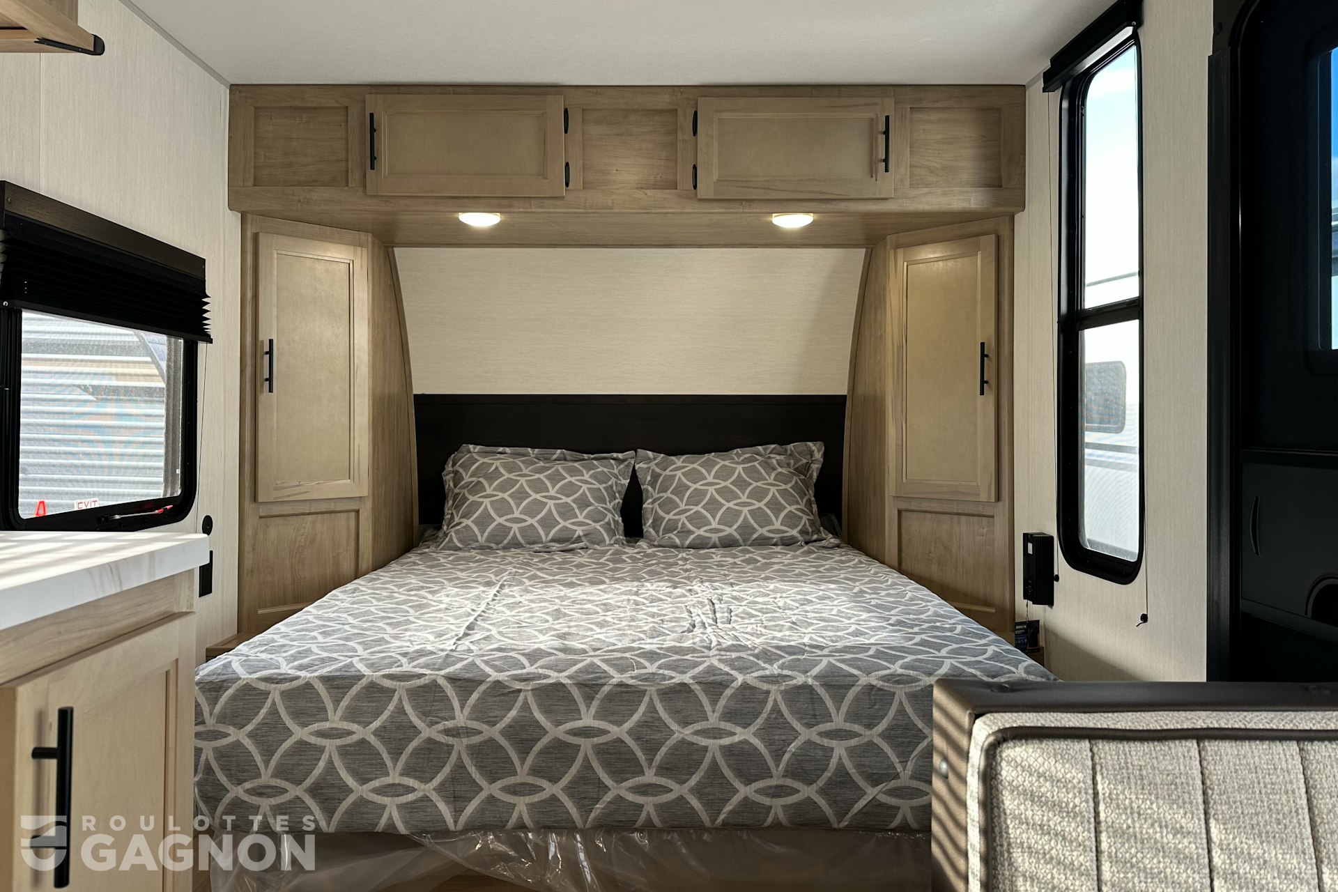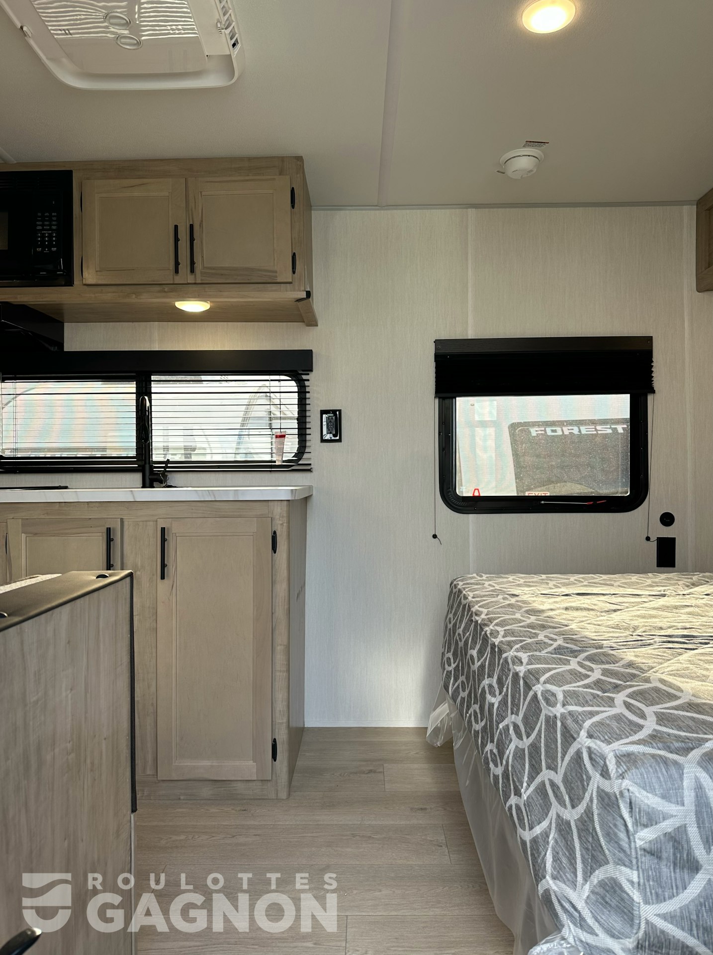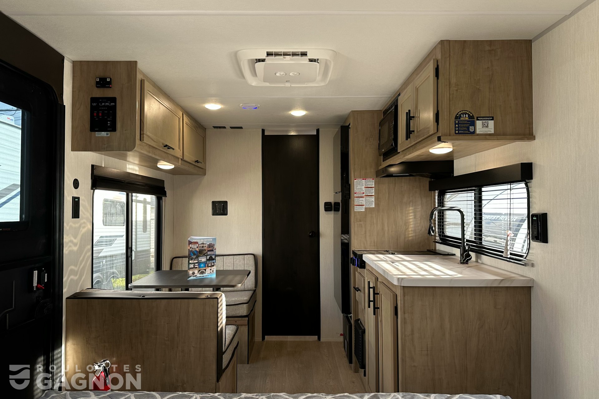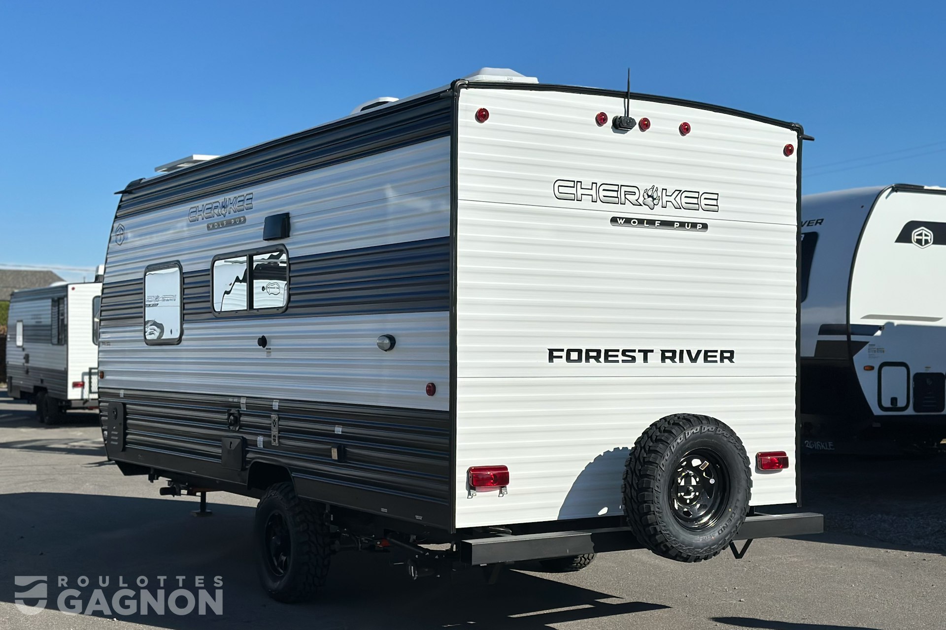 Roulotte Wolf Pup 16 FQW 2026 neuve à vendre. Cette roulotte de voyage fabriquée par Forest River est idéale pour un couple et peut coucher jusqu’à 3 personnes. La Wolf Pup 16 FQW mesure 21,9 pieds et pèse 3 600 lb, son revêtement est en aluminium et les options suivantes sont incluses : vérins stabilisateurs électriques, préparation pour caméra de recul, caméra de recul incluse, auvent électrique, marche pied en un bloc (solid step), prise câble ou satellite, bluetooth, prise USB, radio, hauts parleurs extérieurs, éclairage au DEL, climatiseur, douche extérieure, mags, prises usb c, chauffe-eau instantané, panneau solaire, fenêtres à verre énergétique réfléchissant, ondulateur 150w près du lit et frigo extérieur.