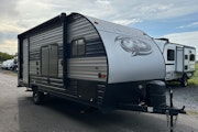 Roulotte Wolf Pup 16 HE 2021 usagée à vendre. Cette roulotte de voyage fabriquée par Forest River est idéale pour un couple et peut coucher jusqu’à 4 personnes. La Wolf Pup 16 HE mesure 22.3 pieds et pèse 3278 lb, son revêtement est en aluminium et les options suivantes sont incluses : vérins stabilisateurs manuels, auvent électrique, marche pied en un bloc (solid step), prise câble ou satellite, prise pour panneau solaire, bluetooth, prise USB, radio, hauts parleurs extérieurs, éclairage au DEL, climatiseur et douche extérieure.