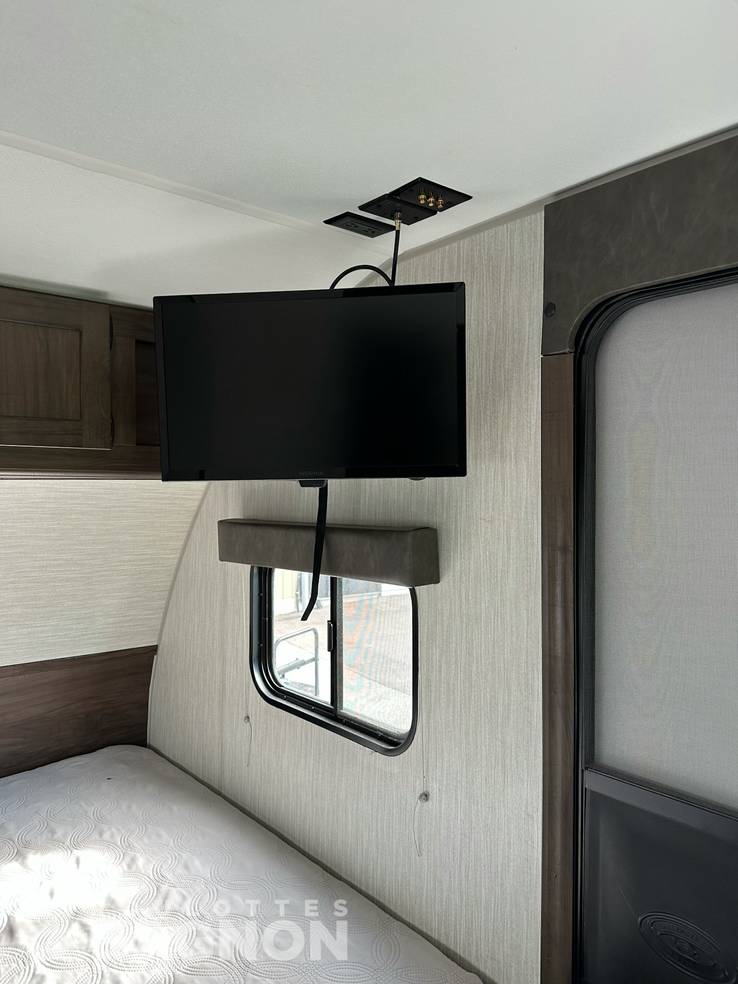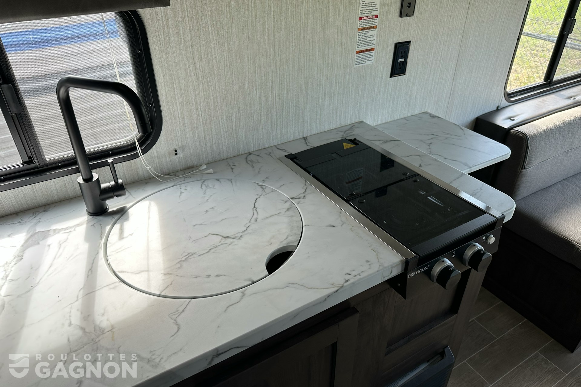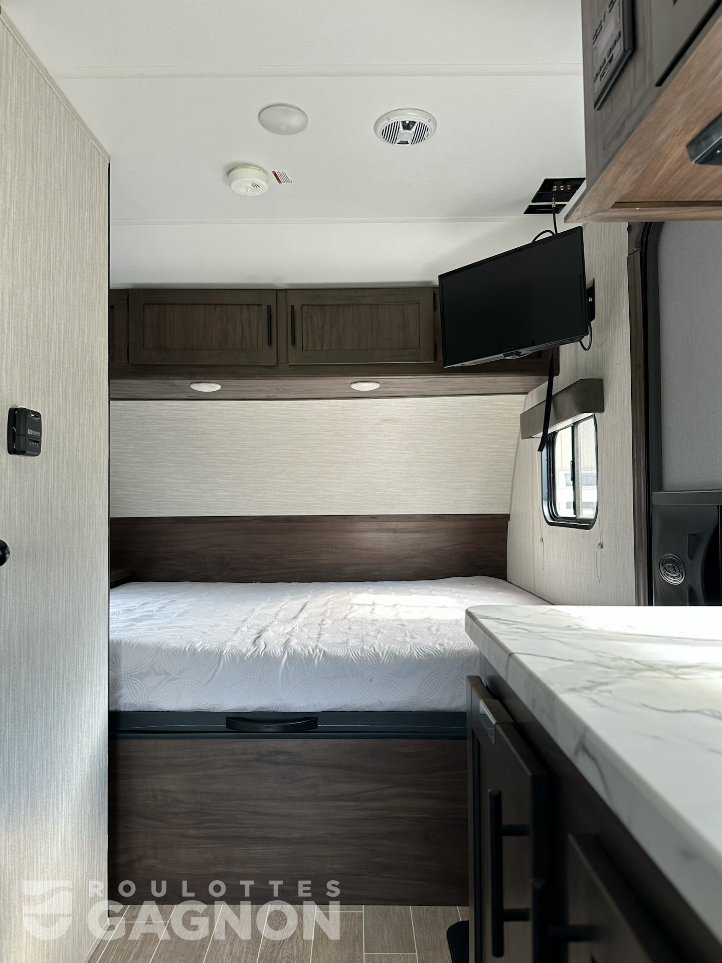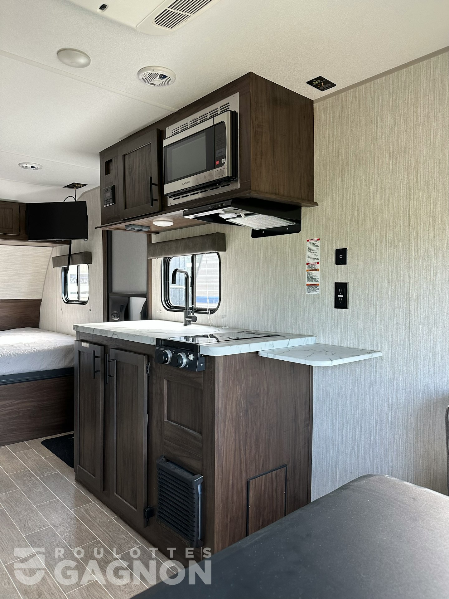 Note: Nous nous efforçons pour décrire les spécifications et les options des roulottes affichées sur notre site le plus précisément possible, toutefois, des erreurs peuvent se glisser. Nous sommes désolés si tel était le cas. Les photos sont à titre indicatif seulement. Les couleurs et les options peuvent varier selon les derniers changements apportés par le fabricant.