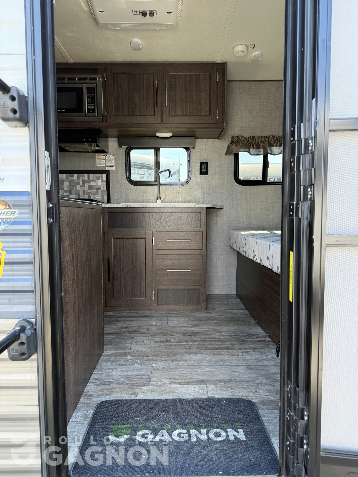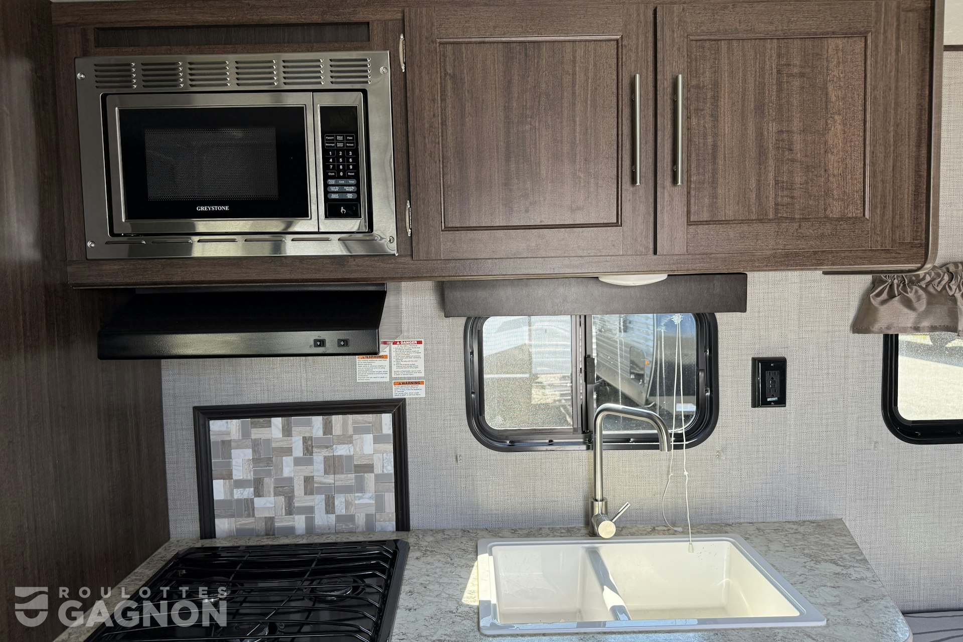 Note: Nous nous efforçons pour décrire les spécifications et les options des roulottes affichées sur notre site le plus précisément possible, toutefois, des erreurs peuvent se glisser. Nous sommes désolés si tel était le cas. Les photos sont à titre indicatif seulement. Les couleurs et les options peuvent varier selon les derniers changements apportés par le fabricant.