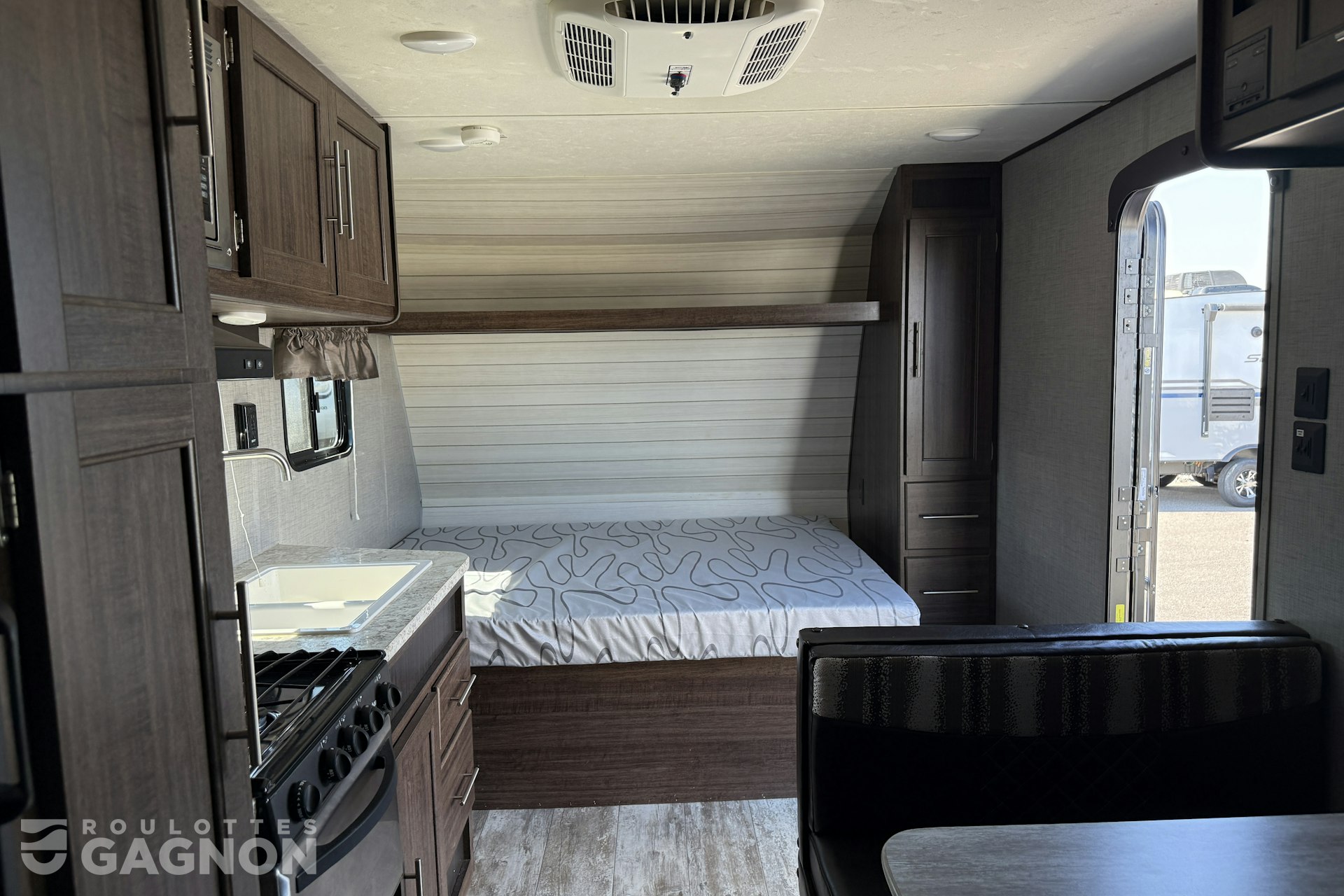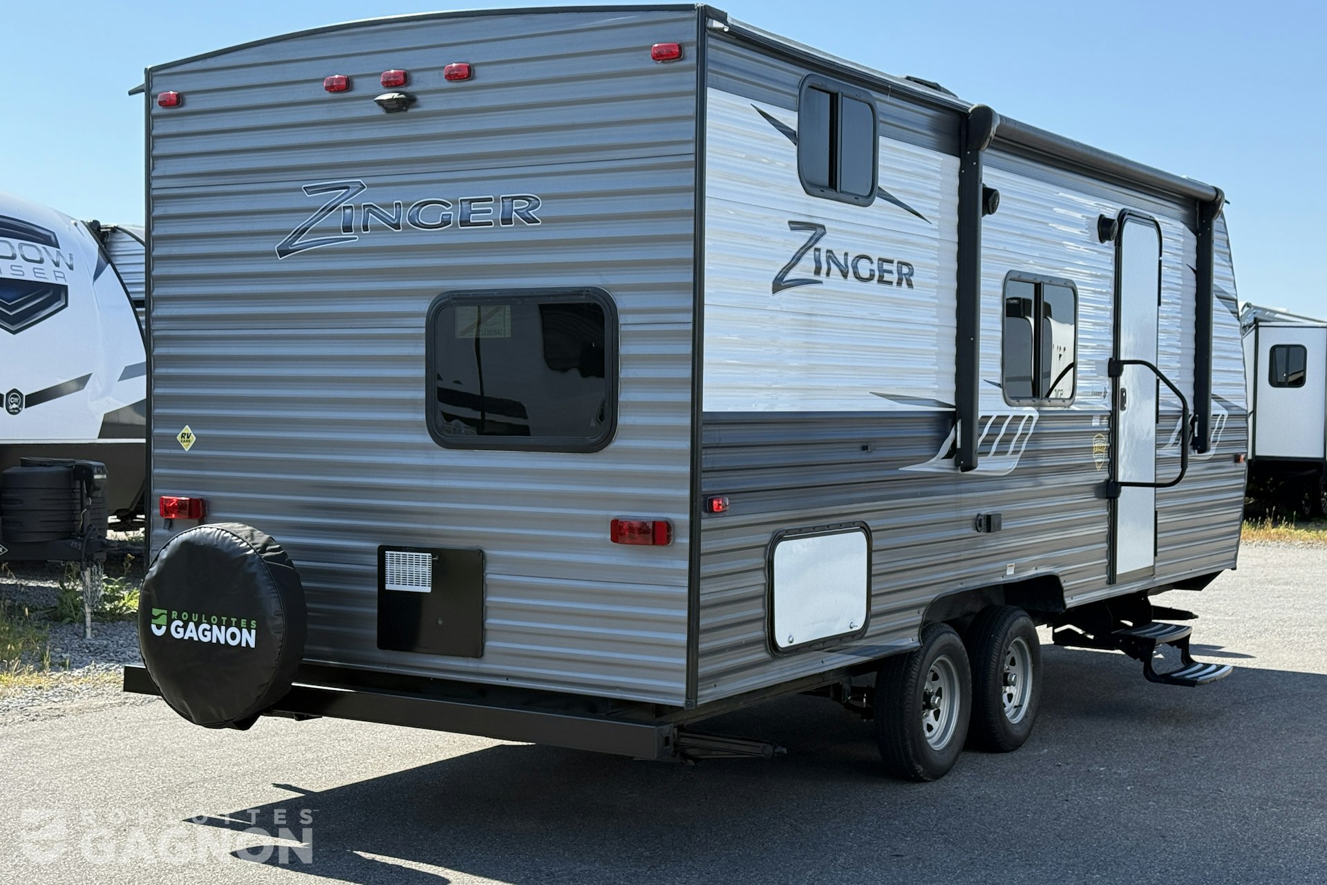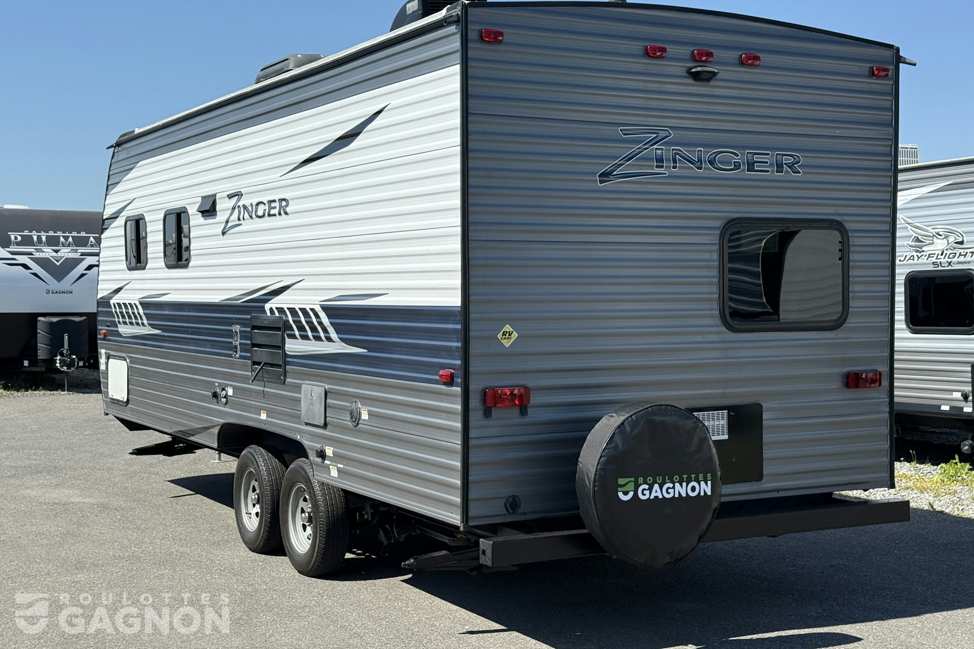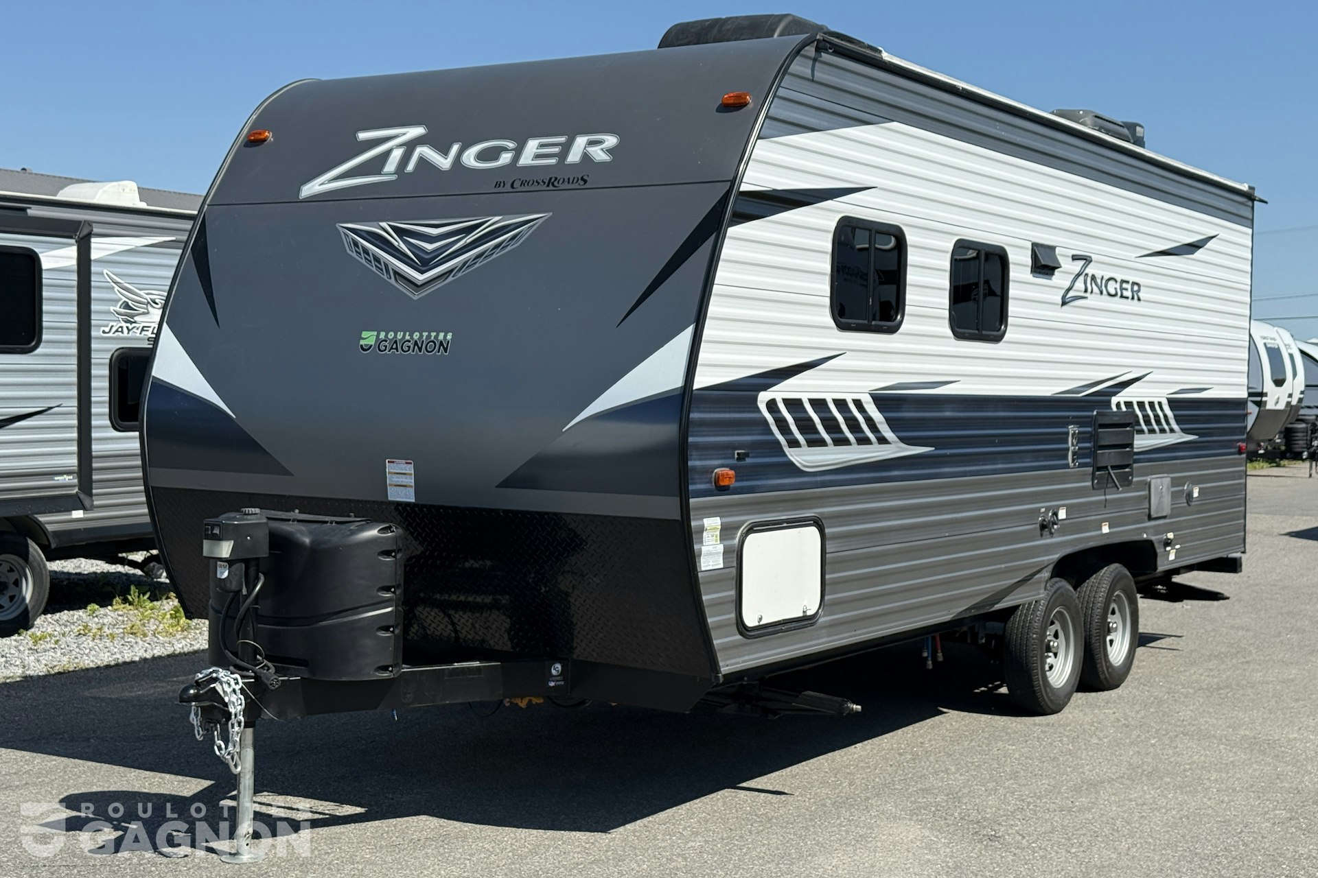 Roulotte Zinger 205 BH 2019 usagée à vendre. Cette roulotte de voyage fabriquée par crossroads est idéale pour une famille et peut coucher jusqu’à 8 personnes. La Zinger 205 BH mesure 24.92 pieds et pèse 4397 lb, son revêtement est en aluminium et les options suivantes sont incluses : jack de pole électrique, vérins stabilisateurs manuels, auvent électrique, marche pied en un bloc (solid step), hauts parleurs extérieurs, climatiseur et douche extérieure.